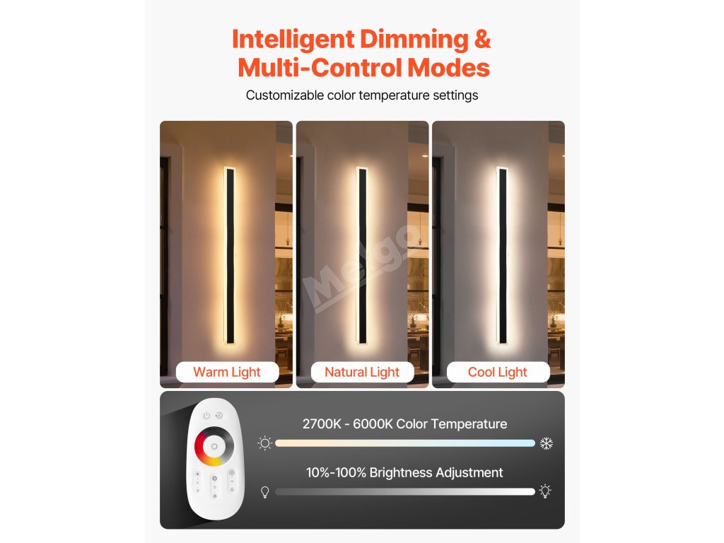 Vícesměrové měkké světlo vytváří atmosférické nálady, vodotěsnost IP65 zajišťuje odolnost při venkovním použití a je vybaveno dálkovým ovládáním pro inteligentní stmívání. Toto energeticky úsporné venkovní nástěnné světlo s prodlouženou životností je ideální pro zahrady, vstupní prostory a komerční fasády.