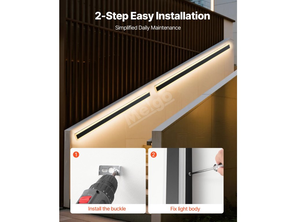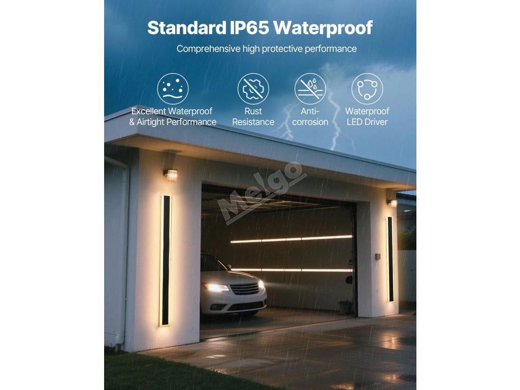 Díky vodotěsnosti IP65 má naše venkovní nástěnné svítidlo vynikající vodotěsné a vzduchotěsné vlastnosti, aby odolalo extrémním povětrnostním podmínkám, jako jsou bouřky a silný vítr. Vestavěný vodotěsný ovladač LED je vybaven ochranou proti zkratu a přetížení, která zajišťuje spolehlivý provoz.