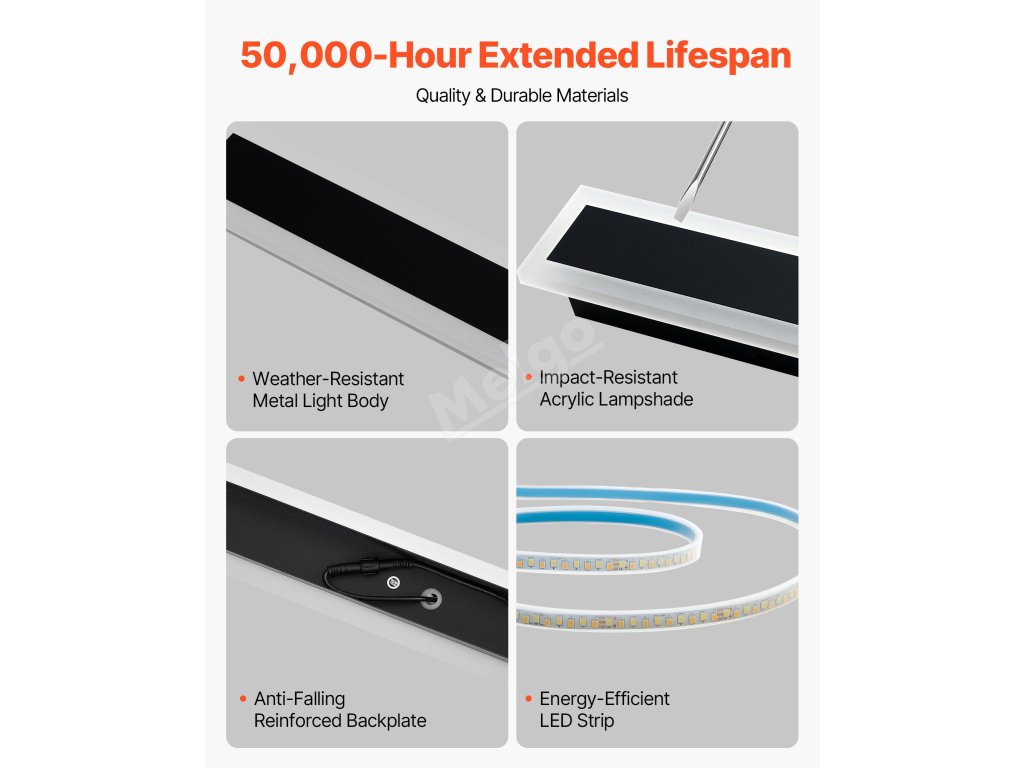 Spolehlivý ochranný systém s kovovým tělem světla odolným proti povětrnostním vlivům, nárazuvzdorným akrylovým stínítkem, zesílenou zadní deskou a energeticky úspornými LED pásky. Nástěnné venkovní svítidlo poskytuje po náročném testování prodlouženou životnost až 50 000 hodin.