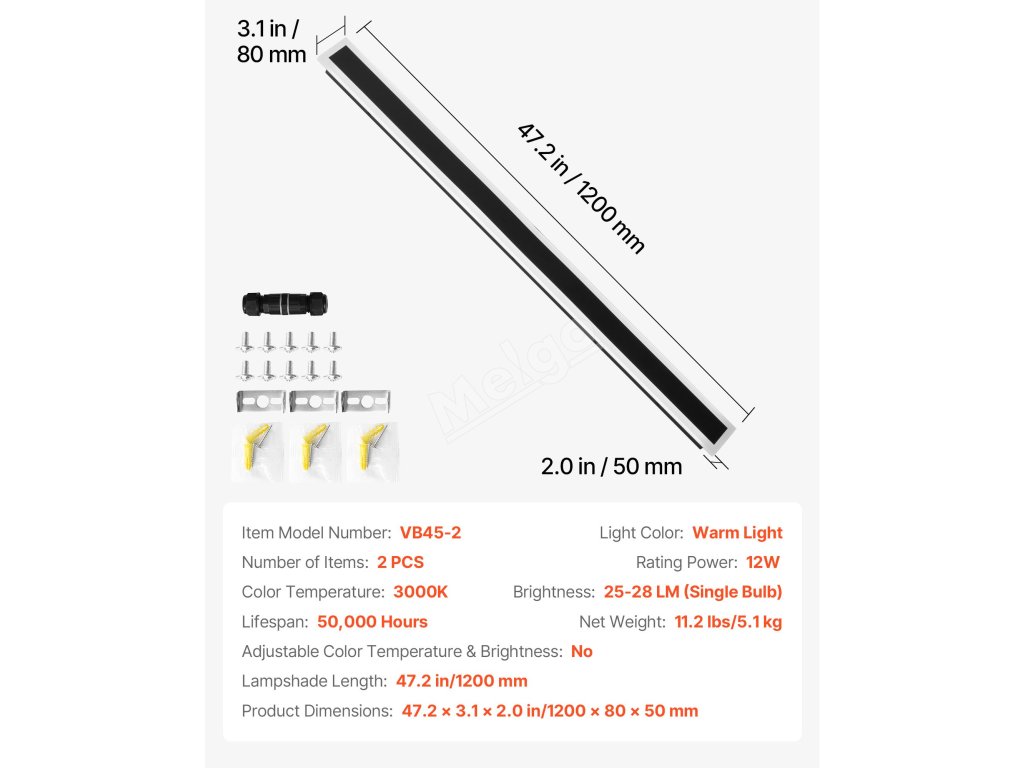 | Rozměry výrobku | 47.2 x 3,1 x 2,0 in/1200 x 80 x 50 mm |