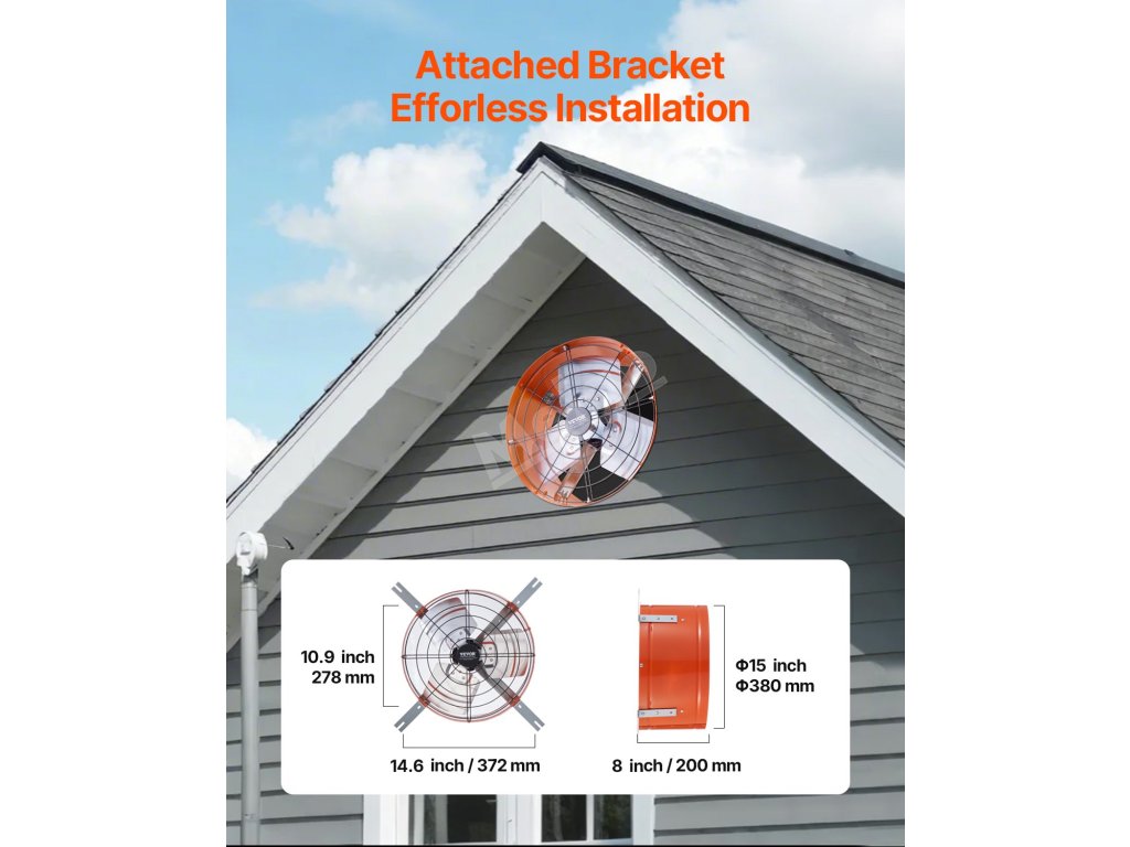 Ventilátor na štít domu 15 palců, 1650 CFM, regulovatelný termostat
