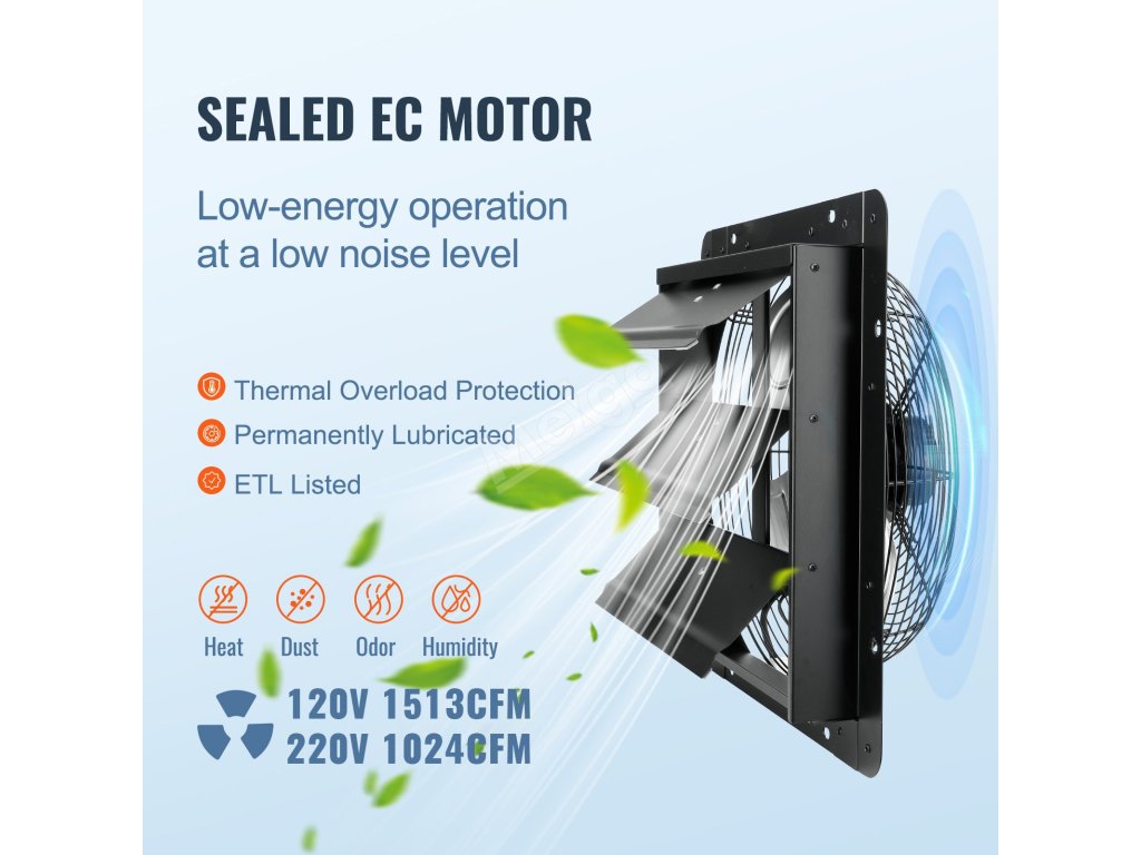 Ventilátor se žaluzií 356 mm, ec motor, 1024 CFM, s regulátorem