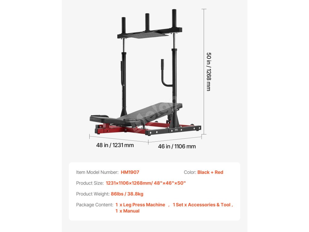 Vertikální leg press, nastavitelný, uhlíková ocel, nosnost 550 lbs