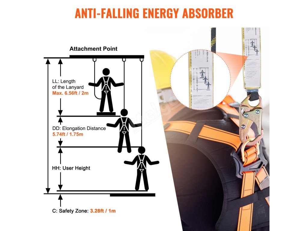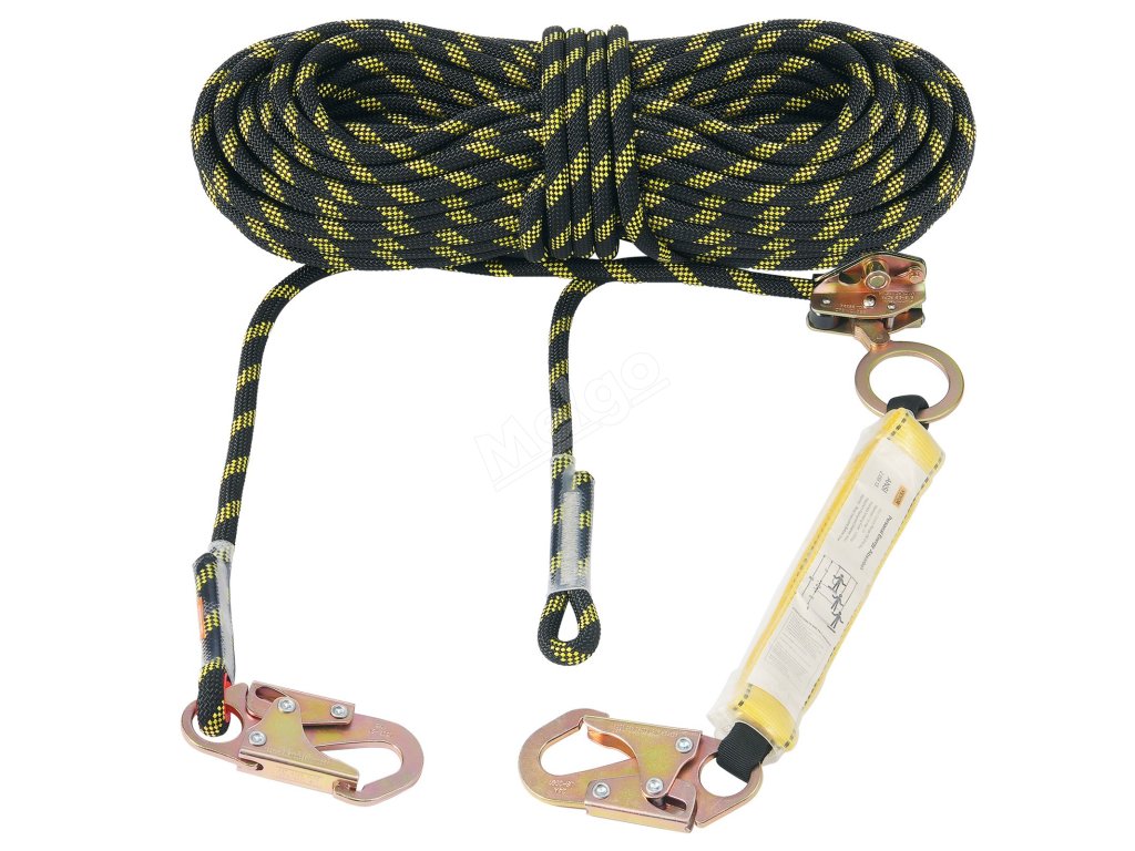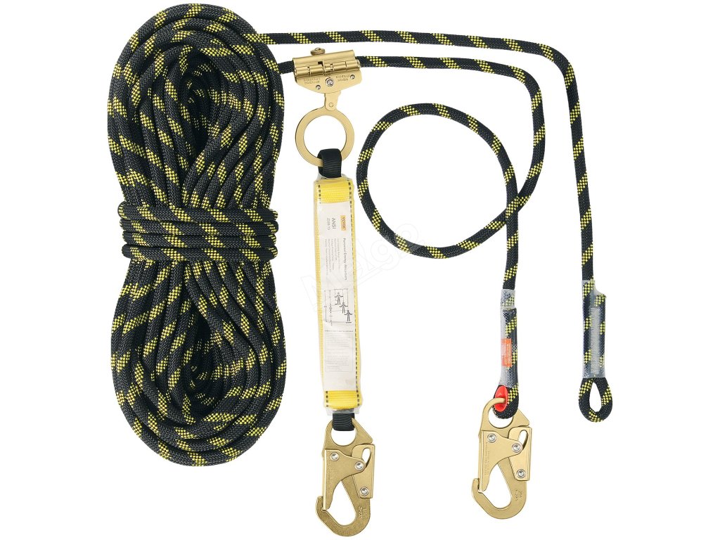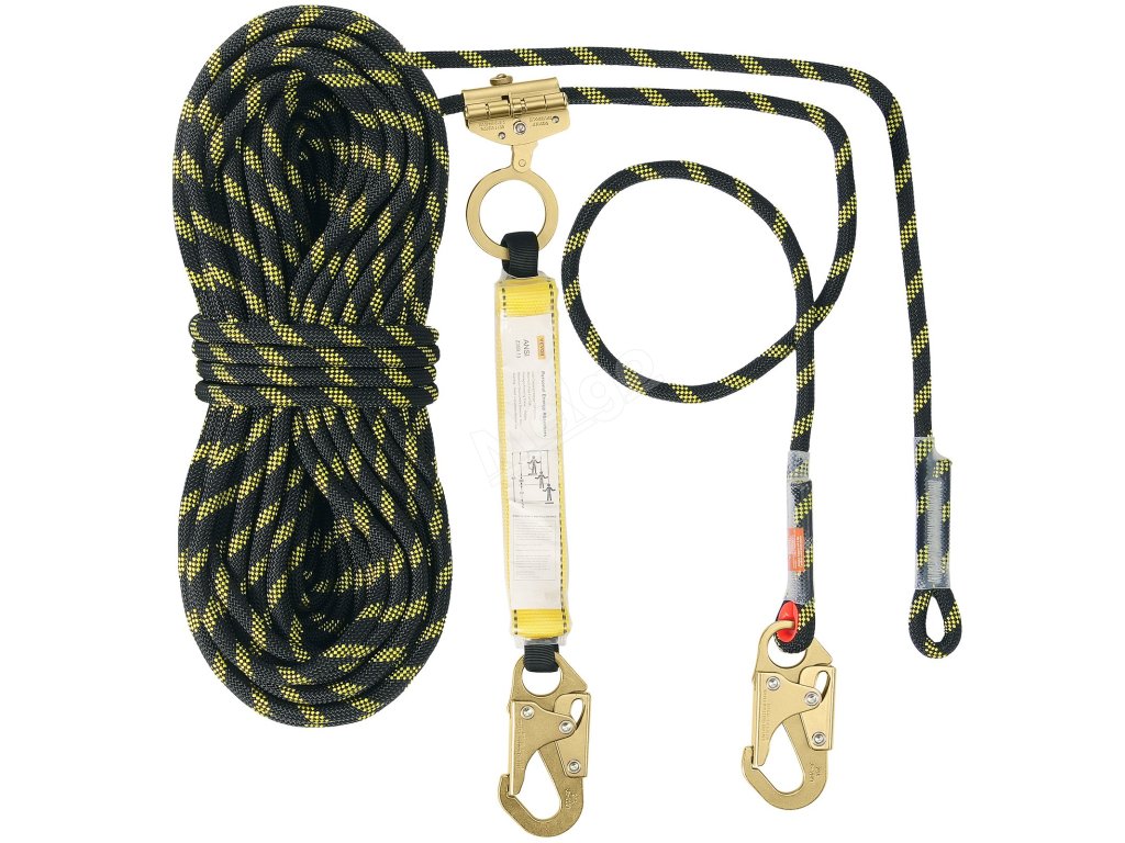 Tato sestava záchranného lana obsahuje: 1 x lano pro ochranu proti pádu, 1 x absorbér energie, 1 x úchyt lana, 2 x ocelové karabiny. Jedná se o nezbytnou pomůcku pro osoby, které potřebují pracovat ve výškách.