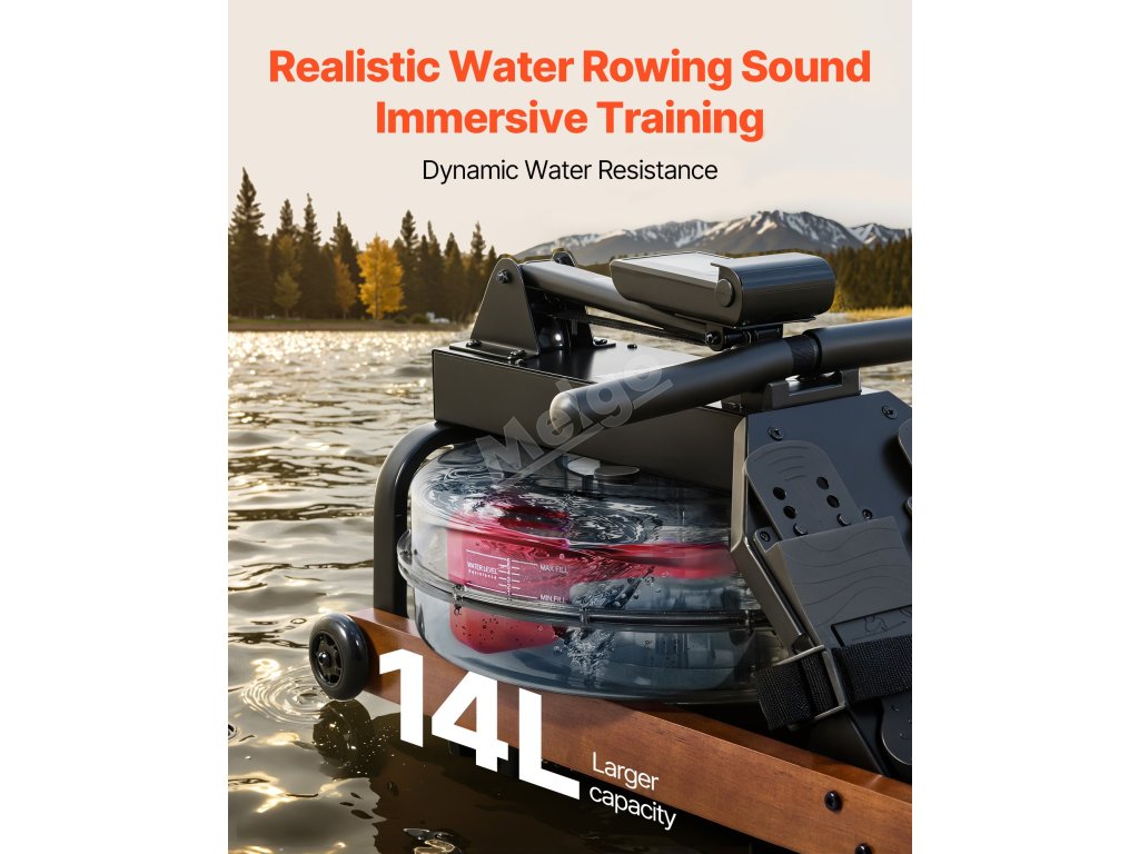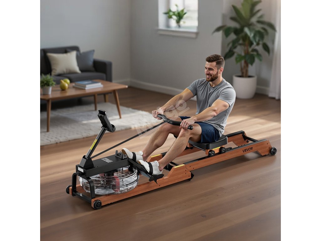 Veslařský trenažér na vodu 6 úrovní, skládací dřevěný, 14L nádrž 158kg