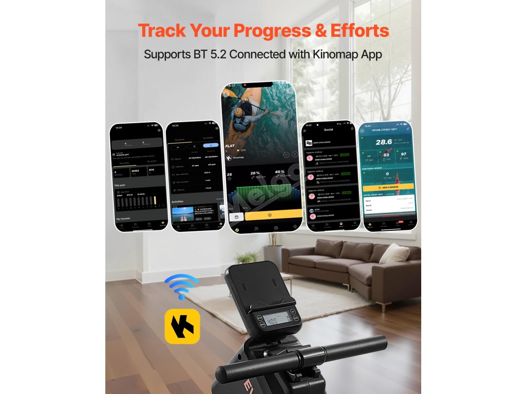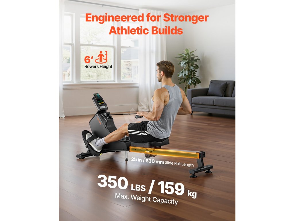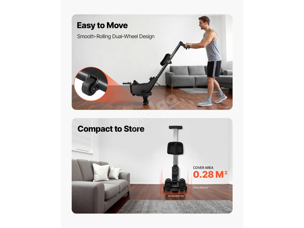 Pevný veslovací trenažér s nosností až 350 kg pro všechny typy postavy zajišťuje stabilní a bezpečné veslování. Hladká dvojitá kolečka pro snadné přemisťování a vertikální skladování pro úsporu místa.