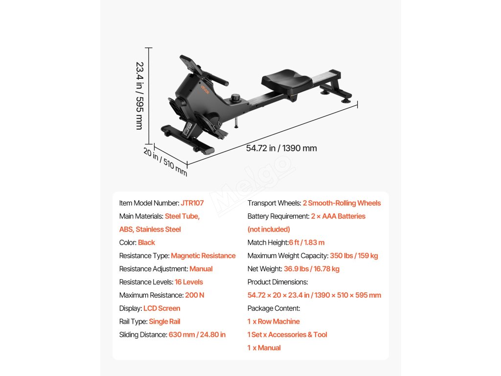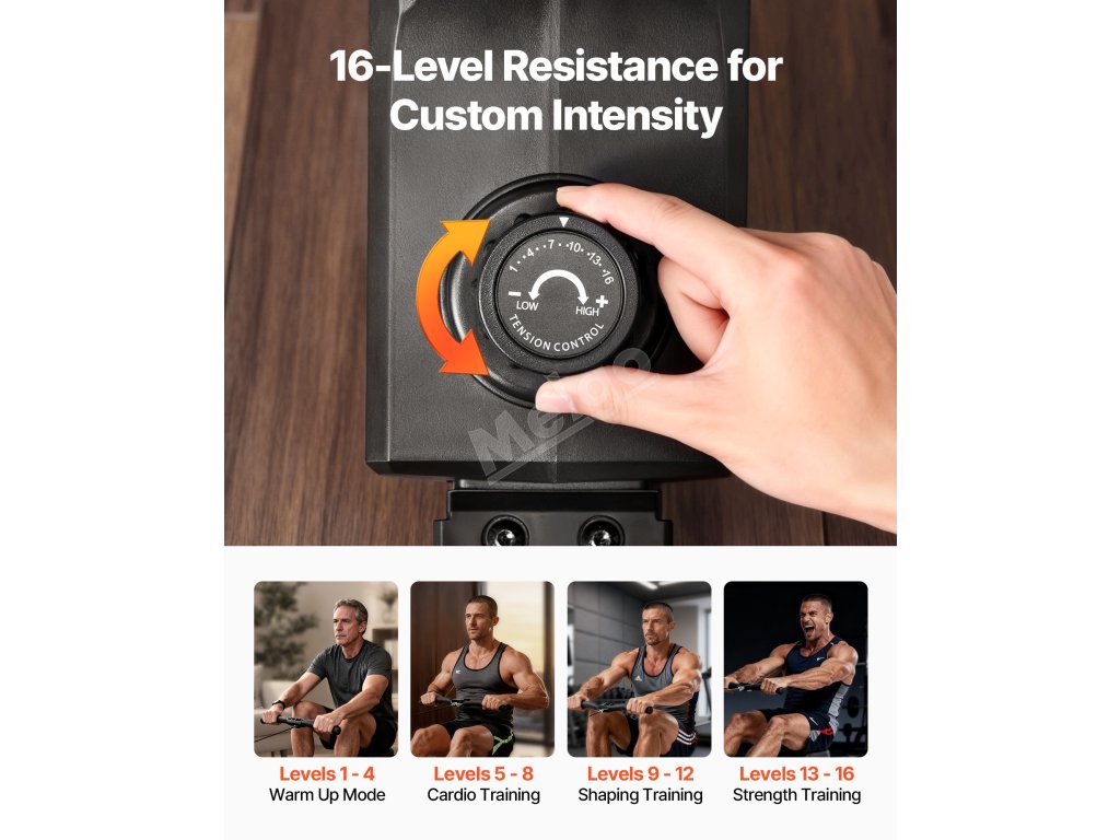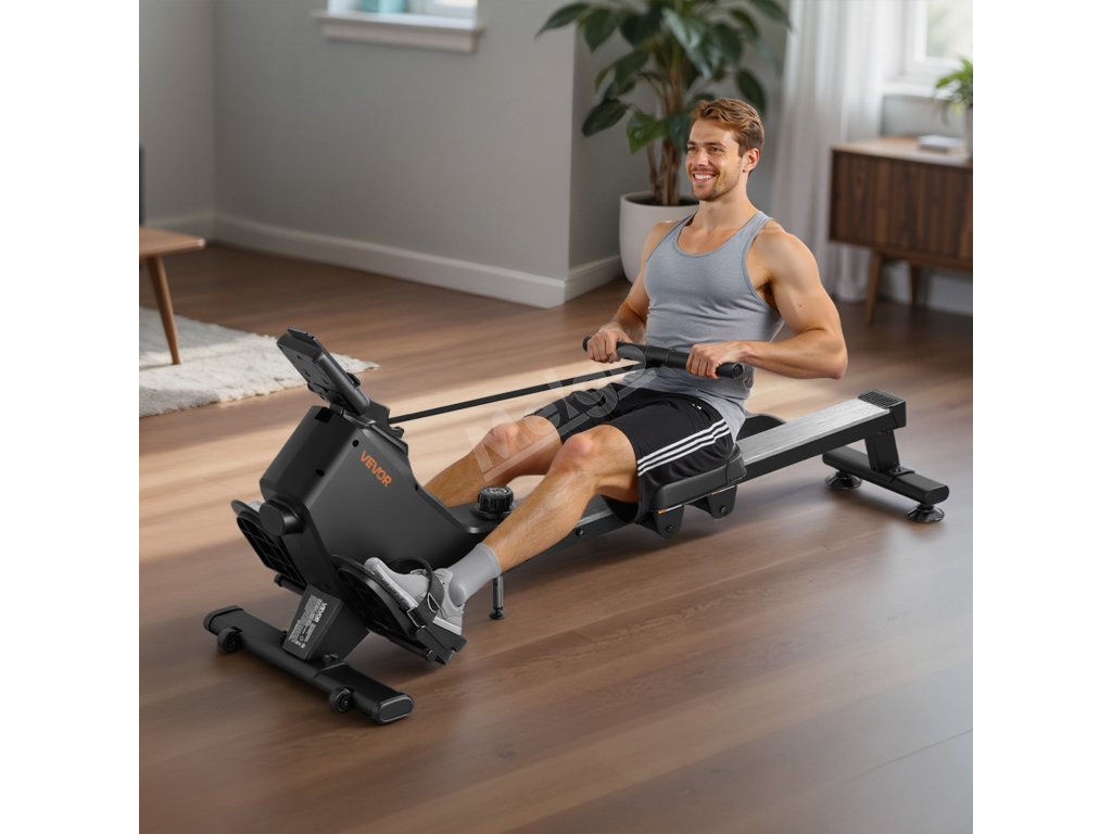 Veslovací trenažér magnetický, 16 úrovní, skládací, nosnost 158 kg