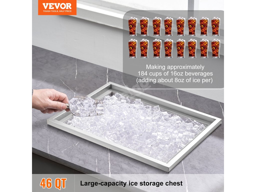 Vestavěný design šetří místo, takže je tento barový zásobník na led vhodný pro použití u nápojových pultů, v hotelech, venkovních restauracích, barech a na dalších místech.