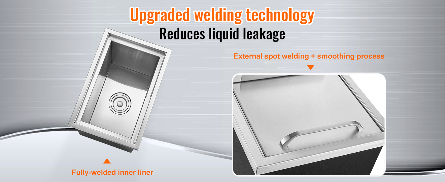 Truhla na led z nerezové oceli je vybavena kompletní sadou odtokového příslušenství pro snadnou instalaci a použití, které umožňuje rychlé odtékání vody a udržuje vnitřek truhly čistý.