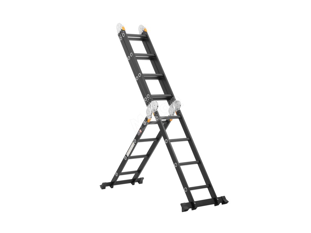 Tento rebrík sa dá ľahko premeniť na rám v tvare písmena A, rám v tvare písmena M, rebrík, rám v tvare písmena L, plošinu, sklopný a rovný tvar, čo poskytuje bezkonkurenčnú všestrannosť na širokú škálu úloh.