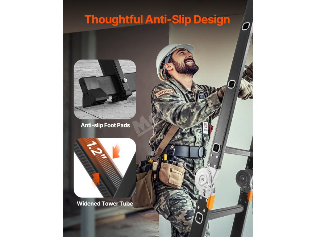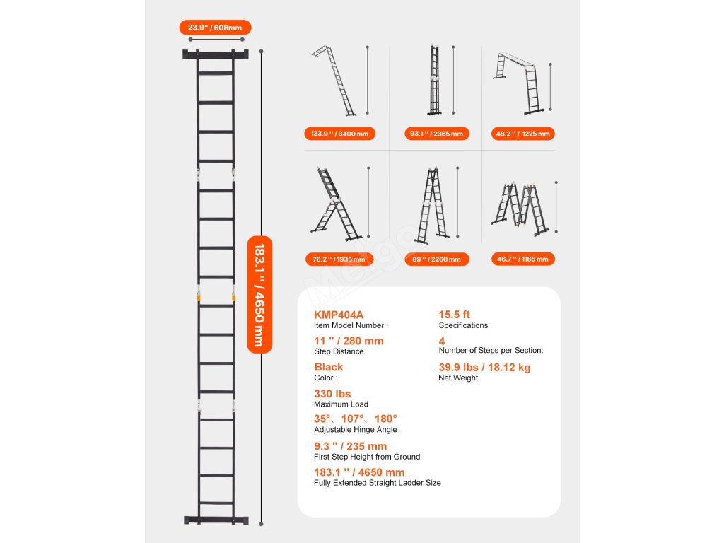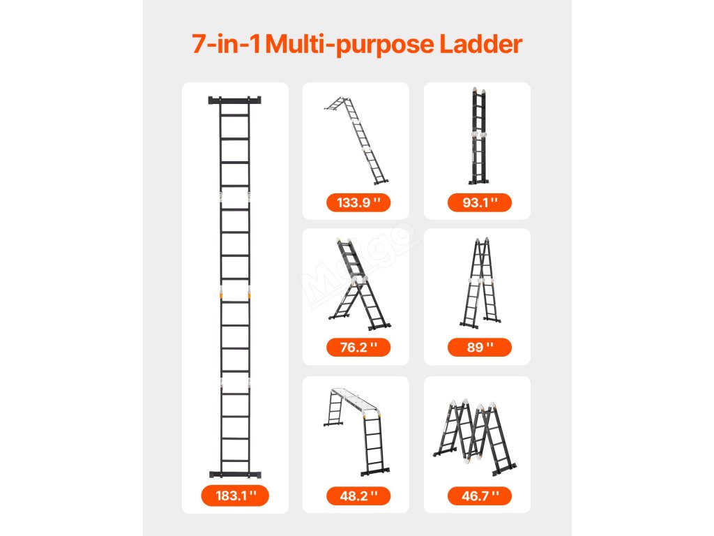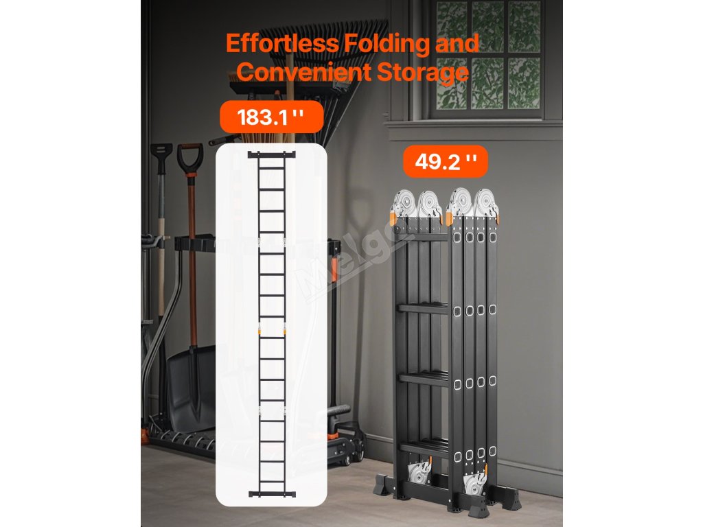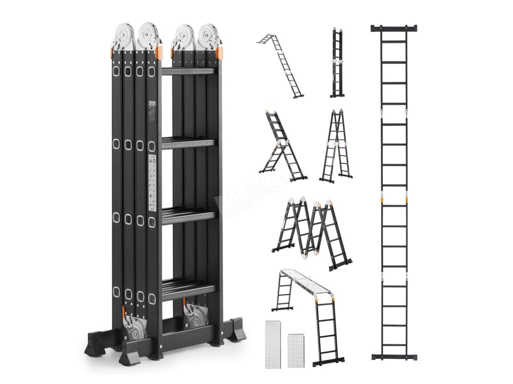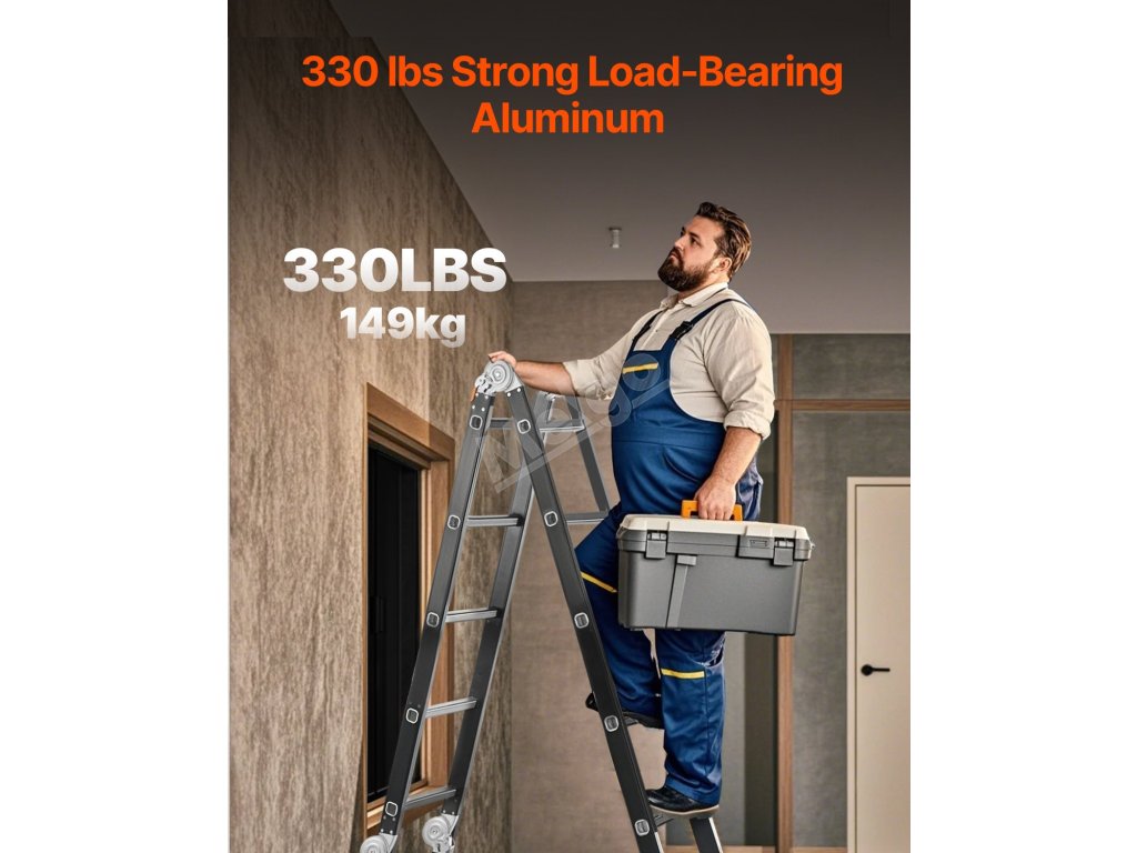 Víceúčelový skládací žebřík 7v1, dosah 15.5ft, nosnost 330 lbs