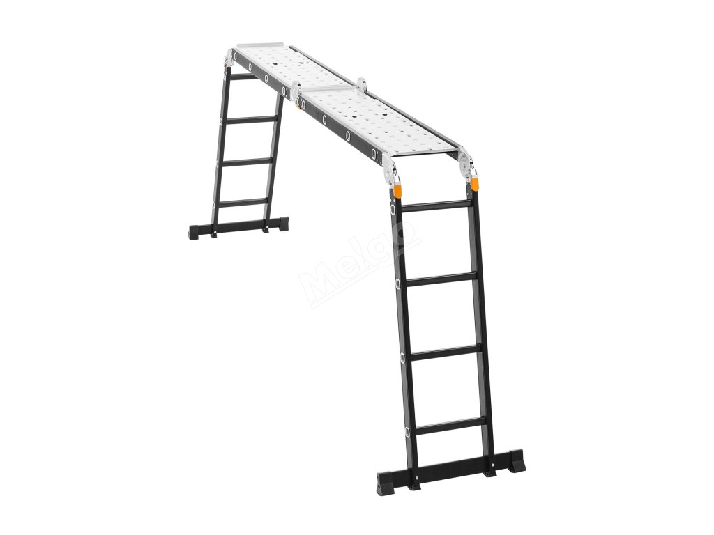Tento žebřík lze snadno přestavět na rám A, rám M, žebřík, rám L, plošinu, skládací a rovný tvar, což poskytuje bezkonkurenční všestrannost pro širokou škálu úkolů.