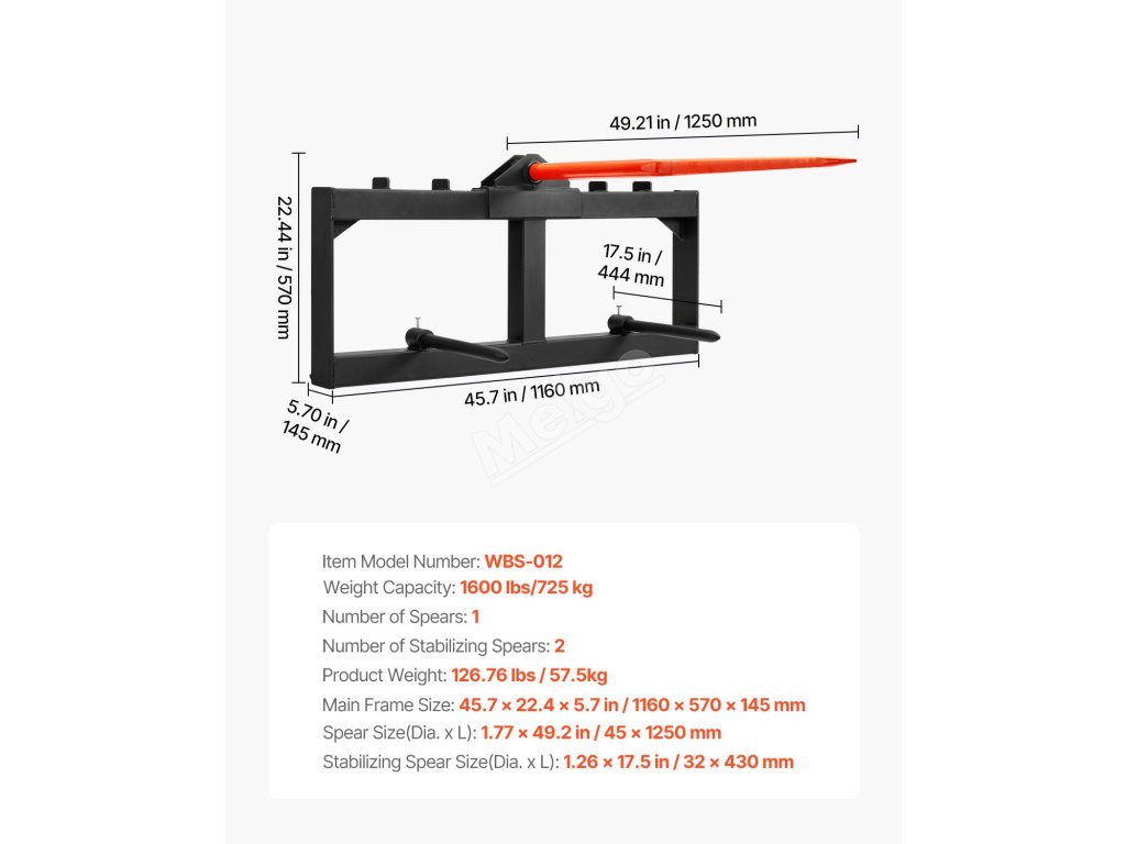 Náš velkokapacitní oštěp na balíky s nosností až 1600 liber. Jeho 49" prodloužené kopyta jsou vyrobena z vysoce pevné pružinové oceli pro snadnou přepravu velkých balíků sena. Je kompatibilní s různými smykem řízenými nakladači. Jeho snadná instalace z něj dělá ideální nástroj pro zemědělské a stavební práce!