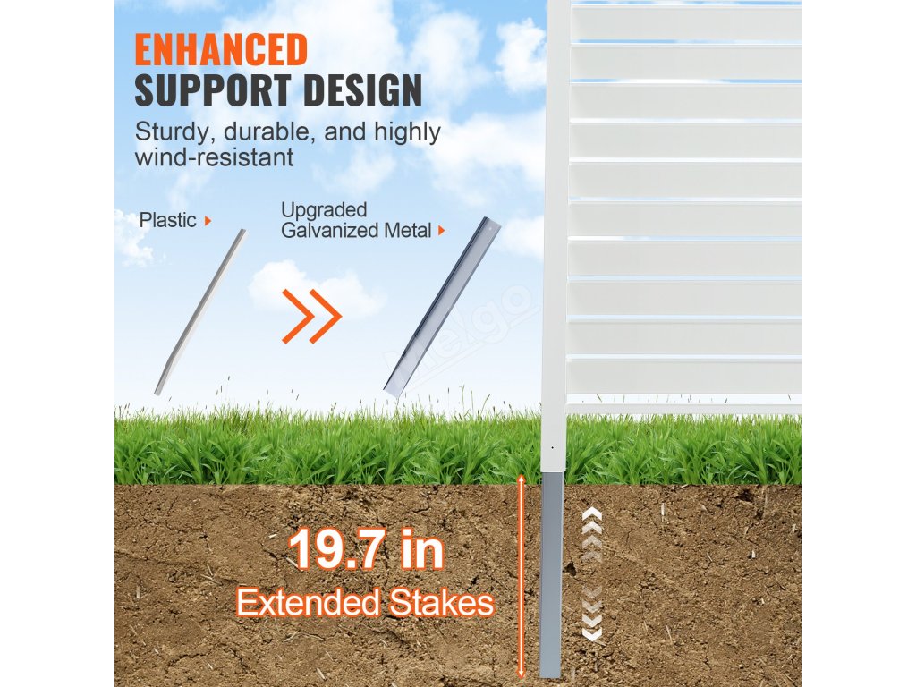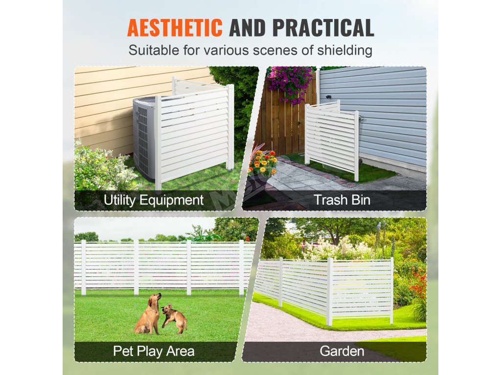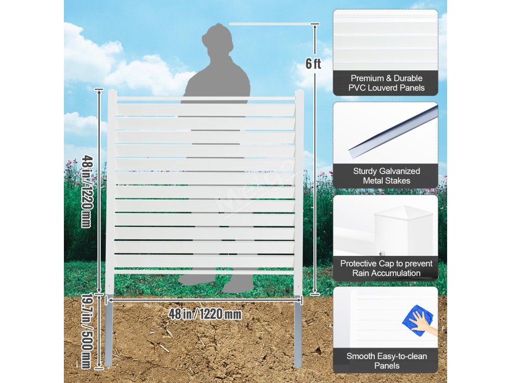 Náš plot z PVC lamel s pozinkovanými kovovými sloupky zaručuje dlouhou životnost ve venkovním prostředí. Velikost 48 "x48" nabízí univerzální možnosti oplocení venkovních objektů nebo soukromých prostor. Dodává se s veškerým potřebným příslušenstvím a podrobným návodem, což je ideální pro pozvednutí vzhledu vašeho dvora.