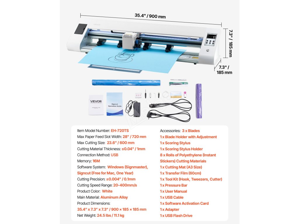 | Softvérový systém | Windows (Signmaster), Signcut (zadarmo pre Mac, jeden rok) |