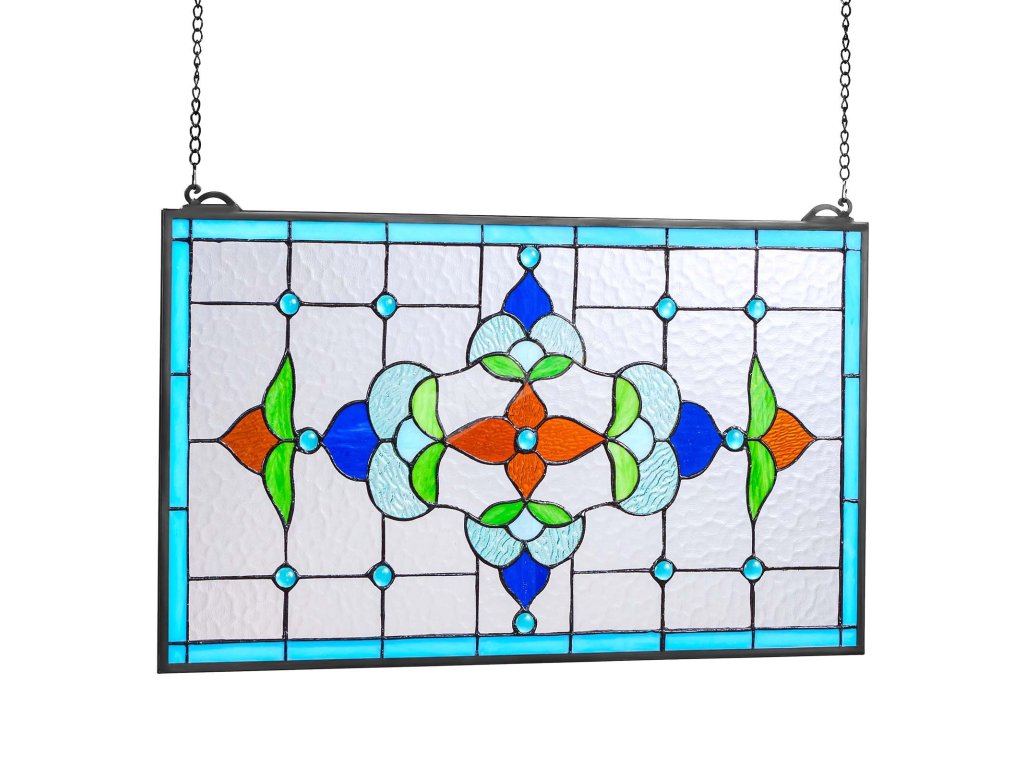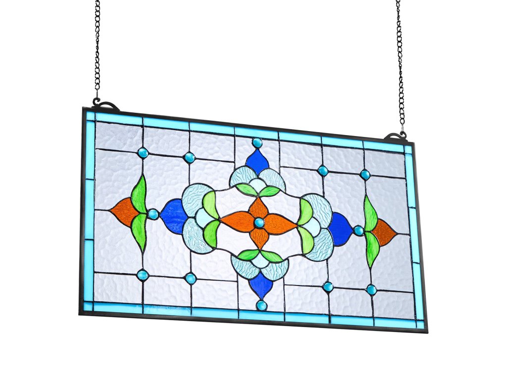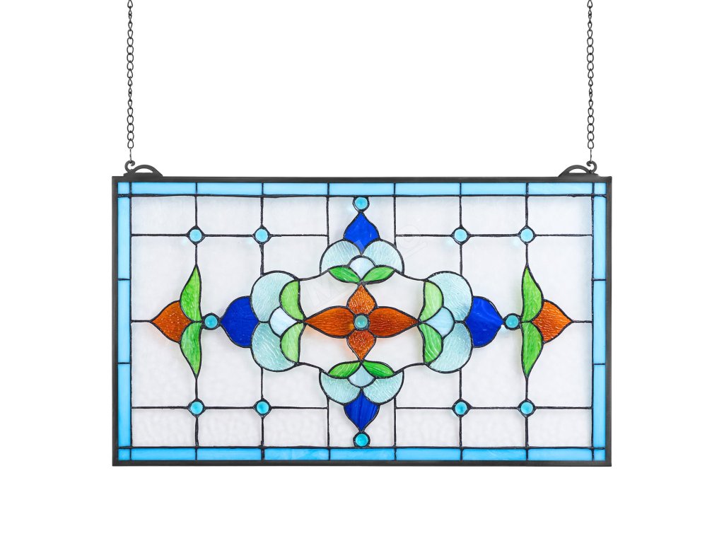 Vitrážový panel okna 664×402 mm, závěsný obdélník, ručně vyrobený