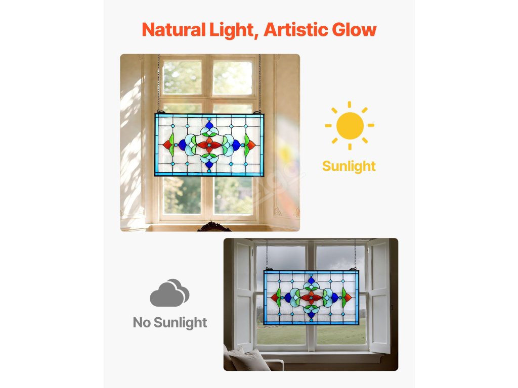 Tato závěsná vitráž je vhodná do moderních i historických interiérů - od obývacích pokojů a kaváren až po jídelny a kostely. Jeho zavěšením okamžitě vytvoříte ohromující ústřední bod a umocníte atmosféru jakéhokoli prostředí.