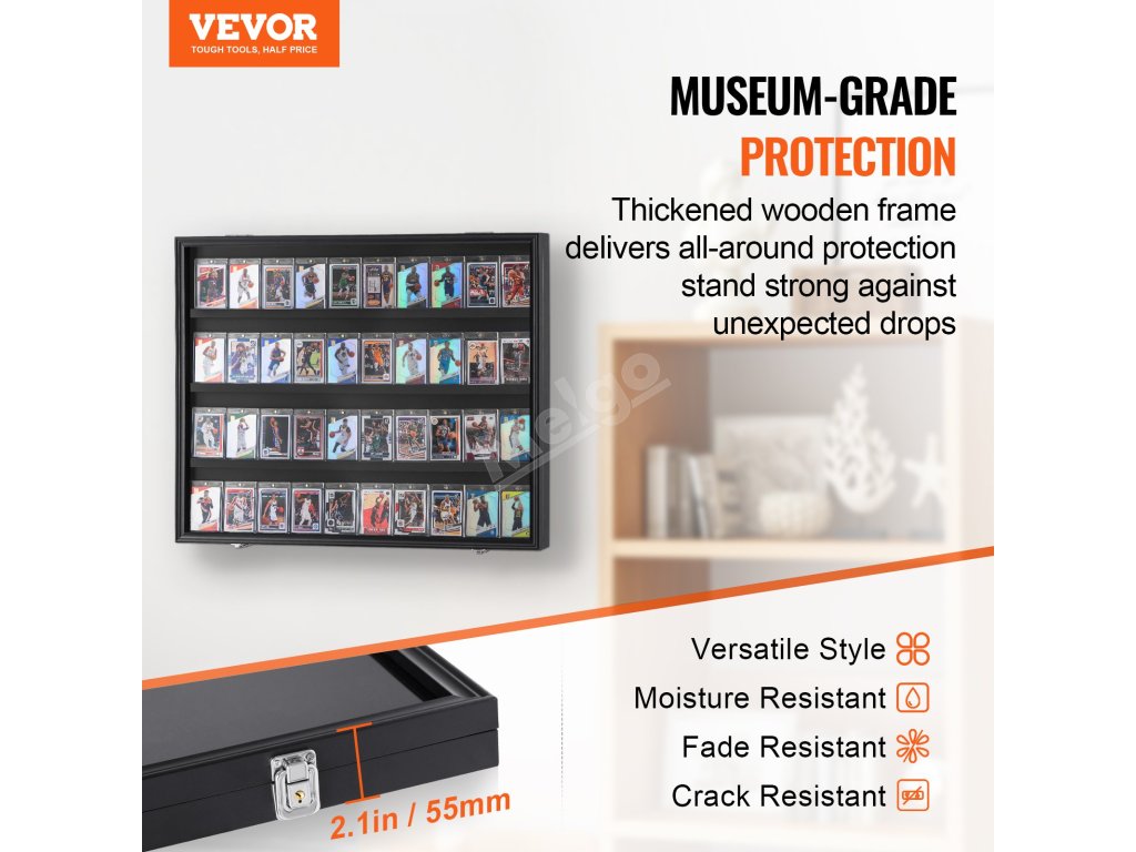 Naše vitrína na sportovní karty je vybavena vysoce kvalitními hardwarovými komponenty, které poskytují pevnou oporu a klouby pro dlouhodobou stabilitu, není snadné je uvolnit nebo deformovat. Naše vitrína na karty je vyrobena z materiálu z dřevovláknitých desek a je konstruována tak, aby odolala zkoušce času.