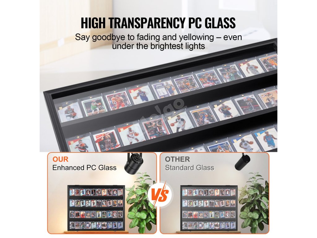 Přestaňte ukládat karty do neviditelných zásuvek nebo krabic! Náš rámeček na karty, vyrobený z dřevěného rámu a vysoce průhledného panelu z PC odolného proti UV záření, je ideální pro stylové a chráněné vystavení vašich sportovních karet! Naše 36stupňová konstrukce se čtyřmi stojany je vhodná pro karty vysoké až 5,4 palce/13,71 cm!