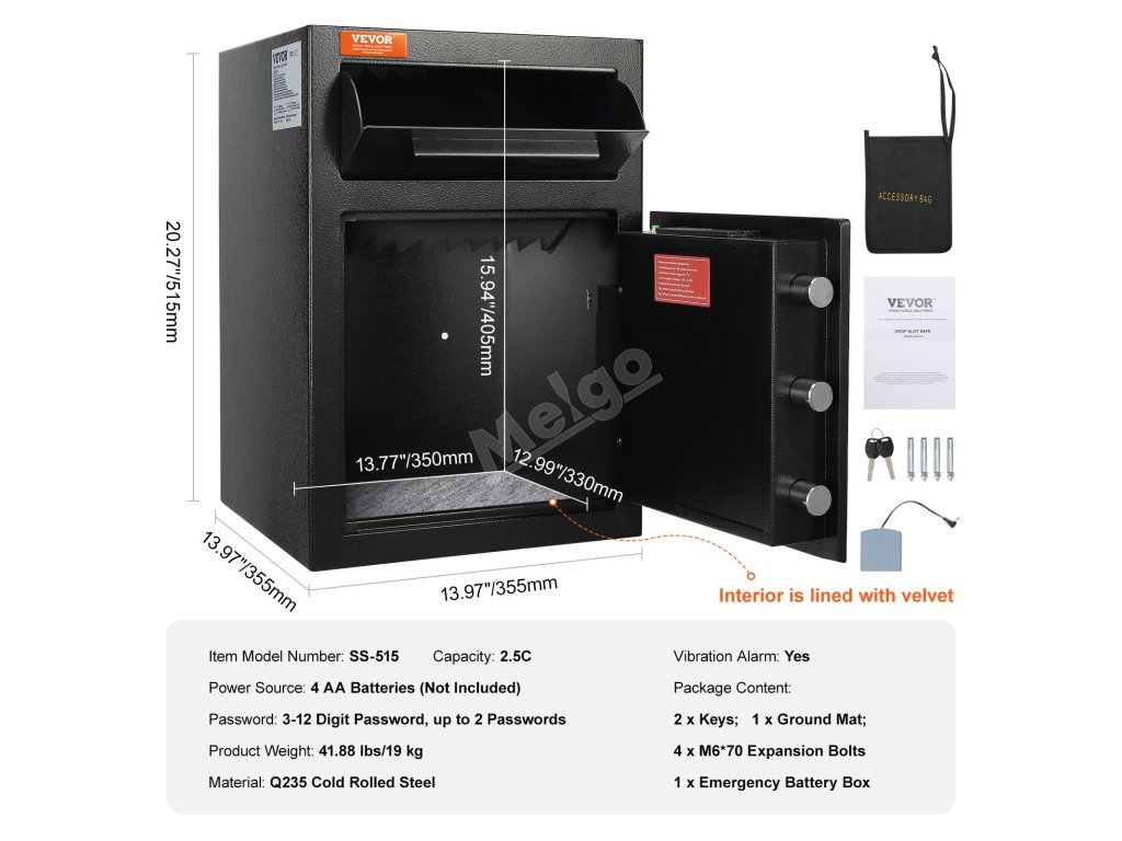 Vkladový trezor se slotem, s kódem, 2 klíče, 20.27"×13.97"×13.97"
