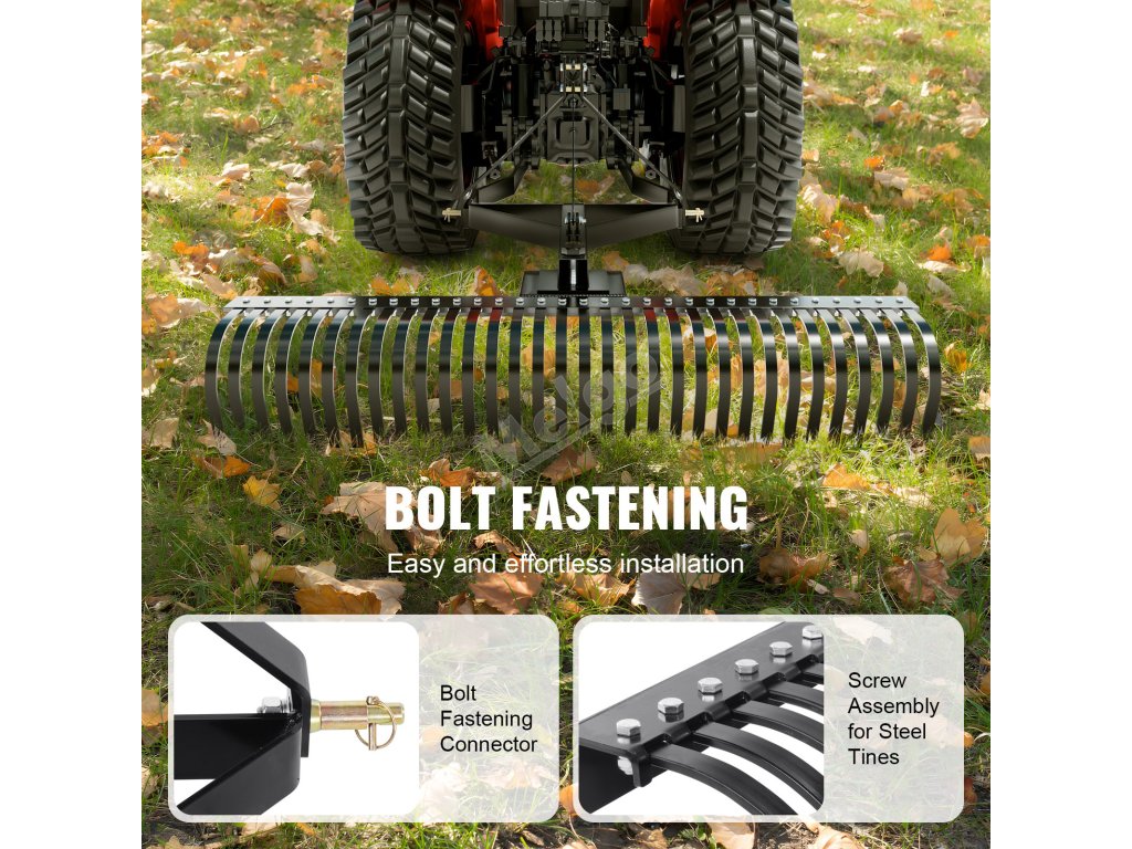 Tento těžký tříbodový vlečný vertikutátor s nástavcem pevně fixuje ocelové hroty k zemi, čímž zajišťuje silnou trakci a účinně odstraňuje plevel z trávníku.