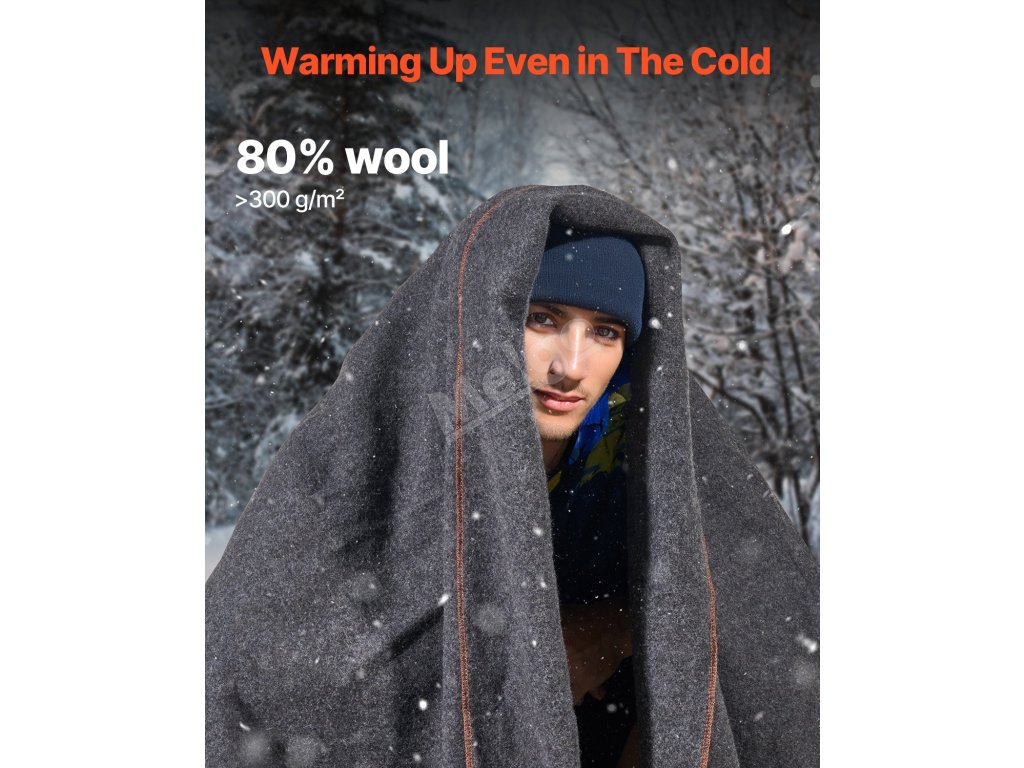 Táto vlnená outdoorová prikrývka je skonštruovaná tak, aby odolala prírodným živlom, a má zosilnené šitie na okrajoch s pevnosťou v ťahu vyššou ako 200 N. Či už kempujete, chodíte na túry alebo objavujete, je to spoľahlivý spoločník, ktorý odolá opotrebovaniu.