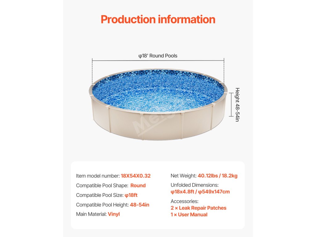 Tato bazénová vložka je vyrobena z odolného vinylu a je určena pro 18stopé kruhové bazény s výškou stěn až 54 palců. Je vyrobena tak, aby dlouho vydržela, odolala opotřebení, proražení a protržení a zároveň nabízí vynikající schopnost zadržovat vodu. Bazénová fólie zaručuje dlouhodobé venkovní použití.
