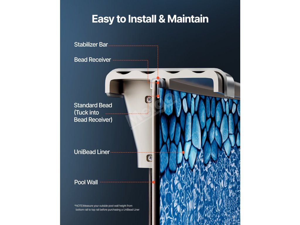 Tato bazénová vložka je vyrobena z odolného vinylu a je určena pro kruhové bazény o délce 21 stop a výšce stěny 52 palců. Je vyrobeno tak, aby vydrželo, a nabízí vynikající odolnost proti opotřebení, propíchnutí a roztržení. Vložka je odolná vůči UV záření, chlóru a zajišťuje dlouhou životnost. Ideální pro rychlou instalaci na dvoře nebo zahradě.