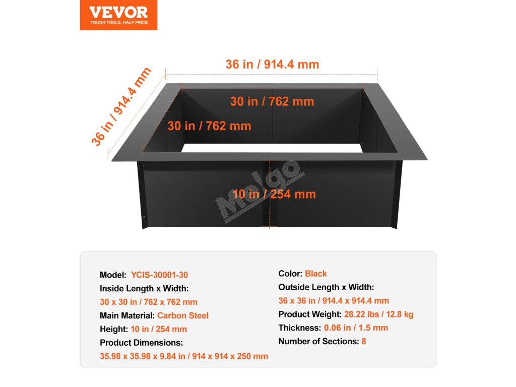 Vložka do topeniště čtvercová 36×36 in/30×30 in, 10inch ocelová
