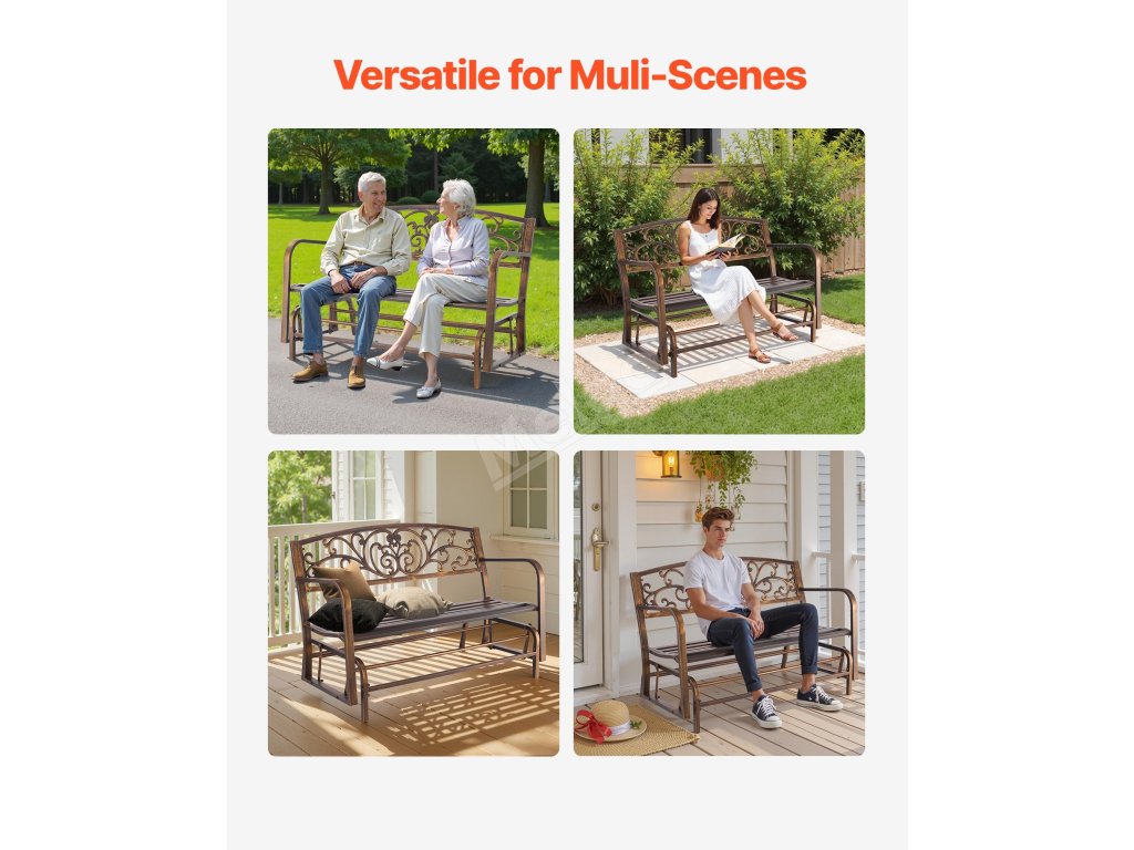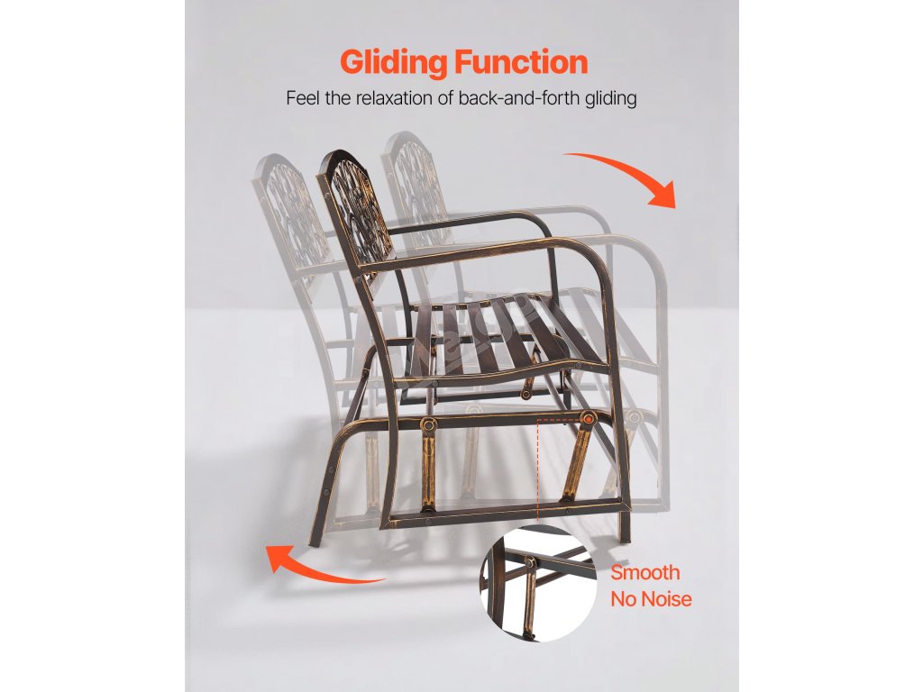 Plynulý zabudovaný posuvný mechanismus lavičky na terasu umožňuje jemné houpání dopředu a dozadu. Vychutnejte si vánek a pozvedněte svou venkovní relaxaci o další pohyb a půvab.