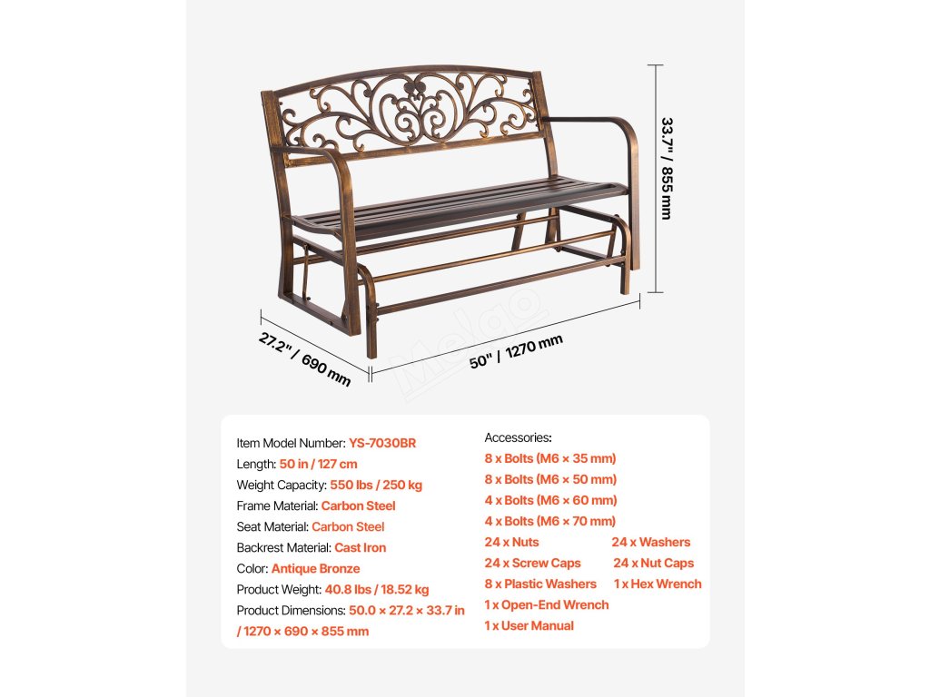 Prostorná venkovní lavice s jedinečným klasickým vzorem pojme 2-3 osoby a unese až 550 kg. Ať už si užíváte samoty, nebo trávíte čas s přáteli a rodinou, poskytne vám potřebné pohodlí a prostor.