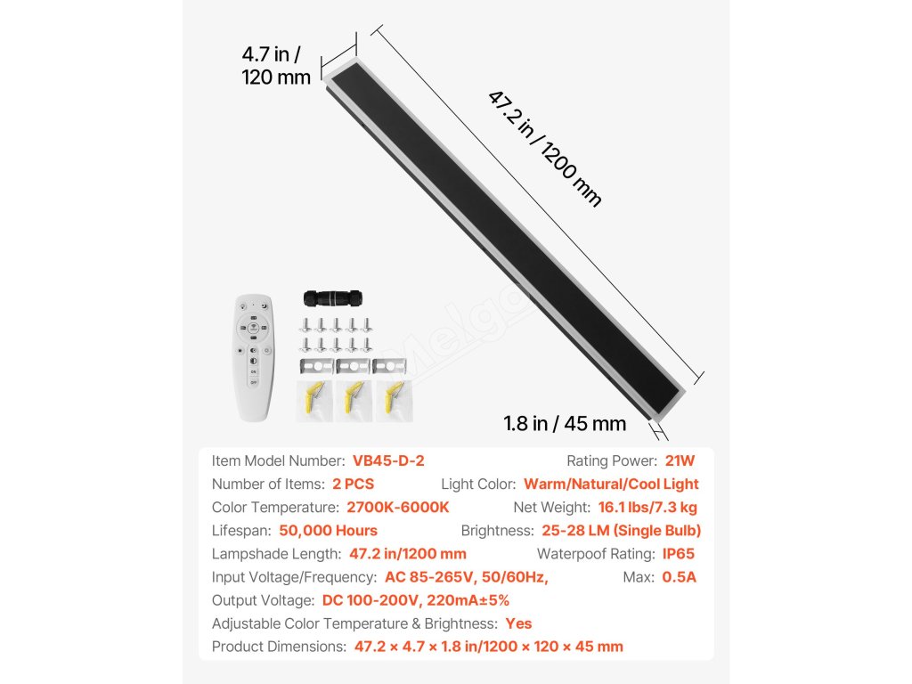 | Rozměry výrobku | 47.2 x 4,7 x 1,8 palce/1200 x 120 x 45 mm |