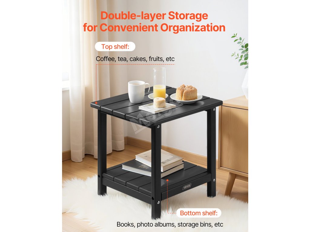 Tento stolek na terasu je vyroben tak, aby odolal povětrnostním vlivům. Je vodotěsný, odolný proti vlhkosti a stálobarevný. Dvouvrstvá konstrukce nabízí dostatek úložného prostoru, který udrží váš prostor čistý a uklizený.