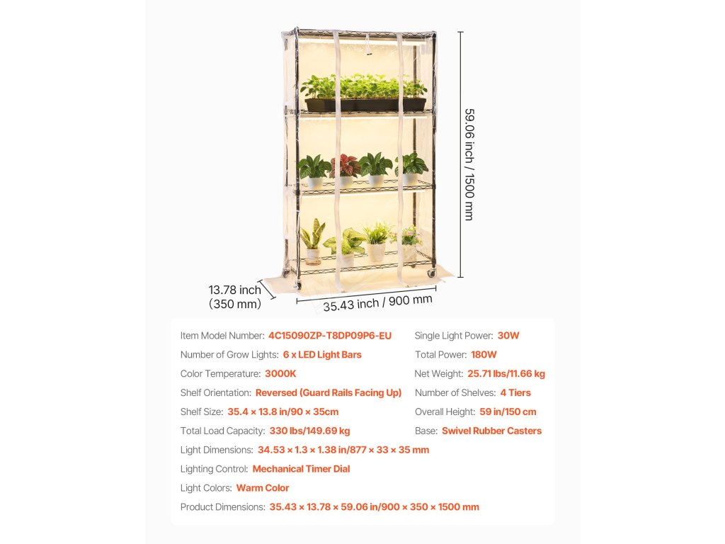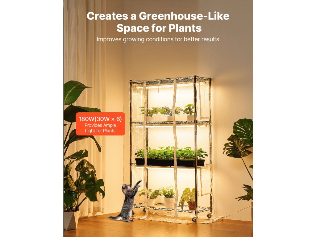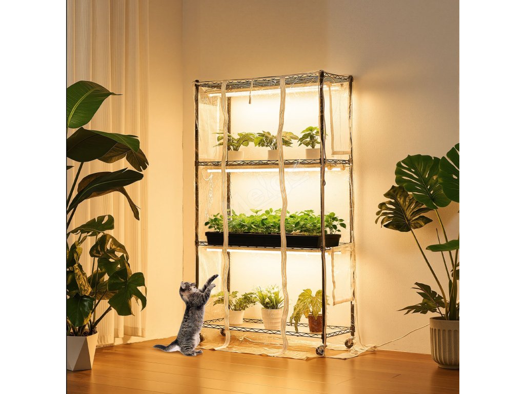 Tento víceúrovňový stojan na rostliny je navržen s pěstebními světly a plastovým krytem skleníku a je ideální pro pěstování v interiéru. Poskytuje dostatek prostoru pro všechny vaše rostliny a zároveň podporuje jejich zdravý růst - vaše vlastní domácí minizahrádka.