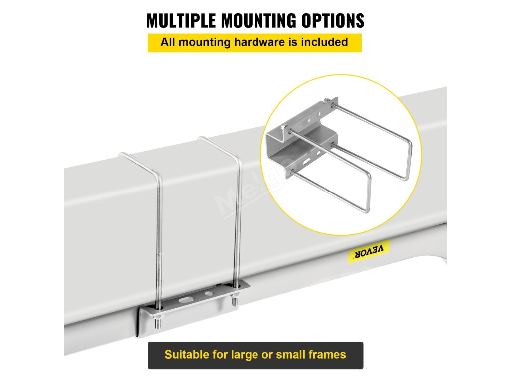 Veškeré montážní příslušenství je součástí balení a je možné zvolit horní nebo spodní montáž. U-šrouby jsou vhodné pro velké i malé rámy.