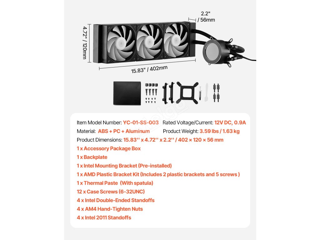 Vodní aio chladič cpu 3×120mm 2.1" lcd argb, kompatibilní se sokety