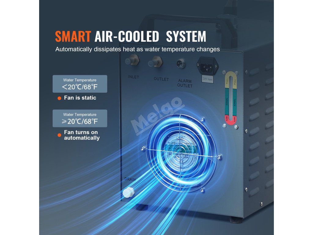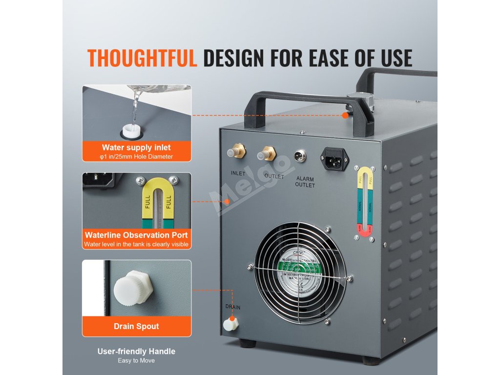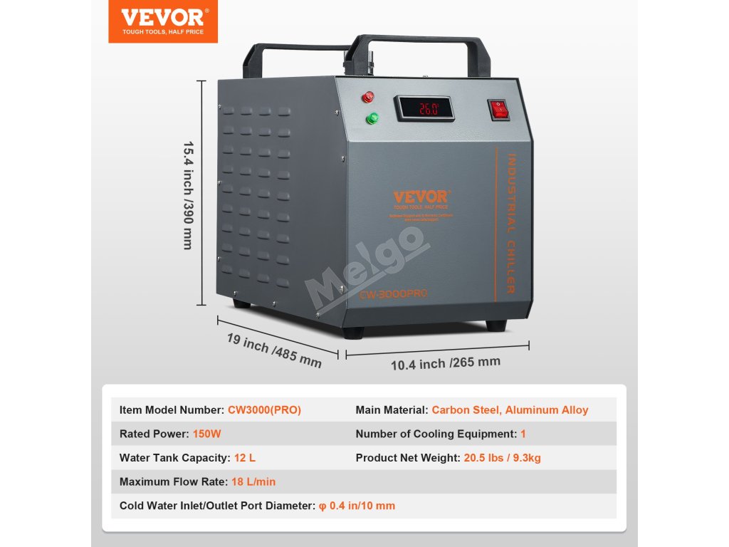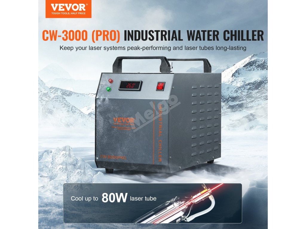 Náš průmyslový vodní chladič CW-3000(PRO) je ideální pro stroje vyžadující kompaktní řešení vodního chlazení. Díky pokročilému systému chlazení vzduchem, 12litrové nádrži na vodu a vestavěnému chladicímu ventilátoru pro vynikající ventilaci je ideální pro laserové trubice do 80 W. Pozvedněte úroveň svého laserového gravírování díky našemu chladicímu výkonu!