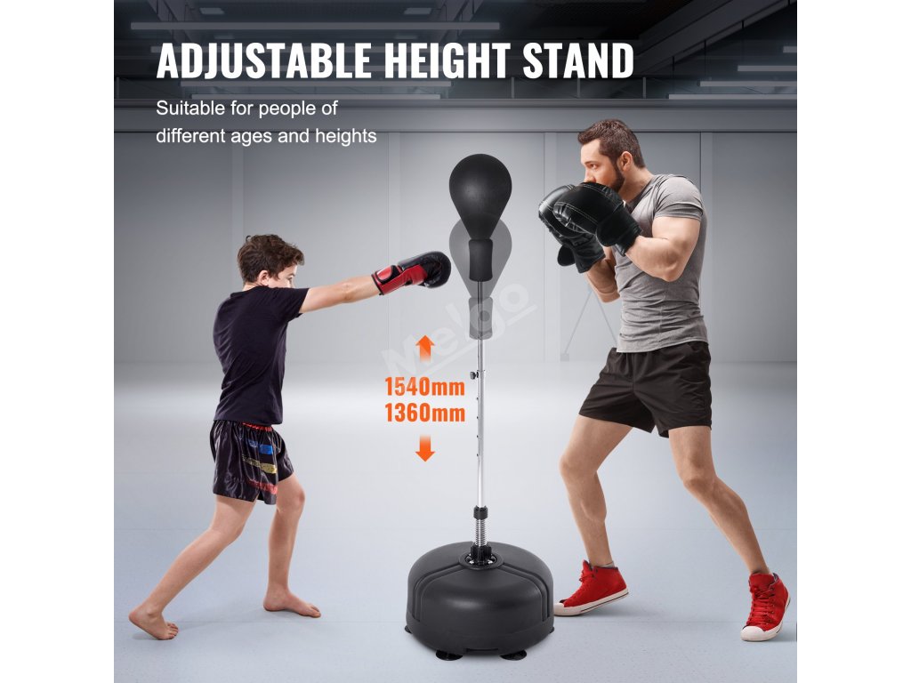 Sada boxovacího pytle je dodávána se stojanem, který je vhodný pro osoby různého věku a výšky, nastavitelný podle velikosti dětské postavy.