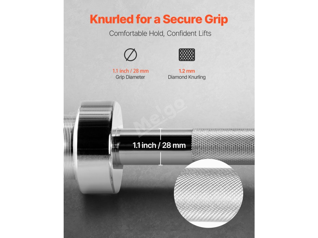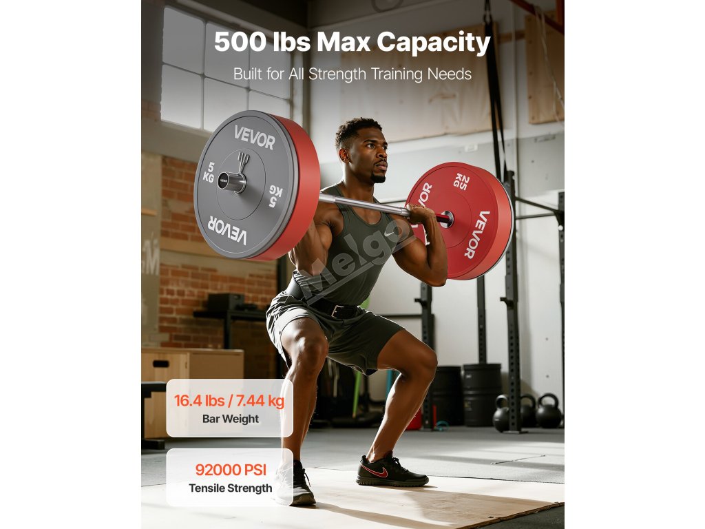 Tato lavicová tyč unese až 500 liber/226,8 kg s pevností v tahu 92 000 PSI. Díky mosazným pouzdrům, jehlovým ložiskům a diamantovému drážkování poskytuje stabilitu, bezpečný úchop a pohodlnou manipulaci pro efektivní silový trénink.