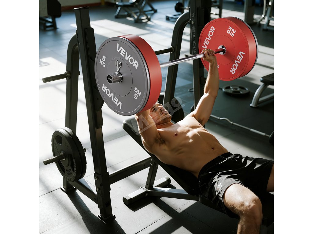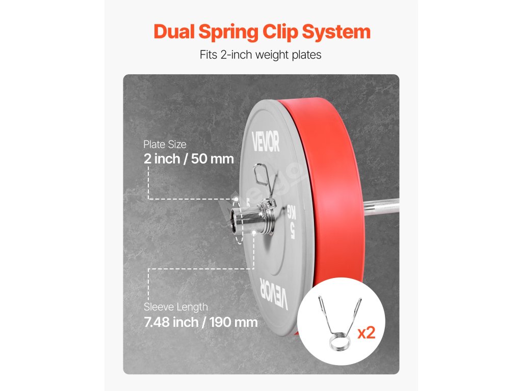 Tyč činky má přesné vroubkování a průměr úchopu 28 mm pro bezpečné a ergonomické držení. Konce s pojistnými kroužky udržují talíře pevně na místě a zajišťují stabilitu a bezpečnost při každém tréninku.