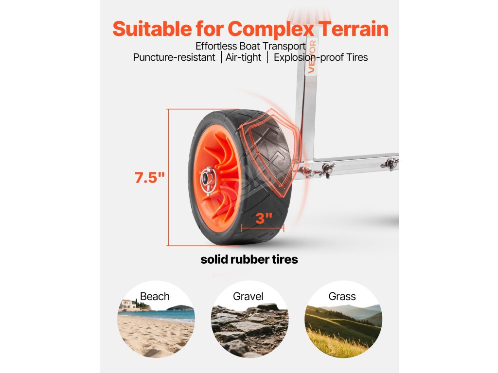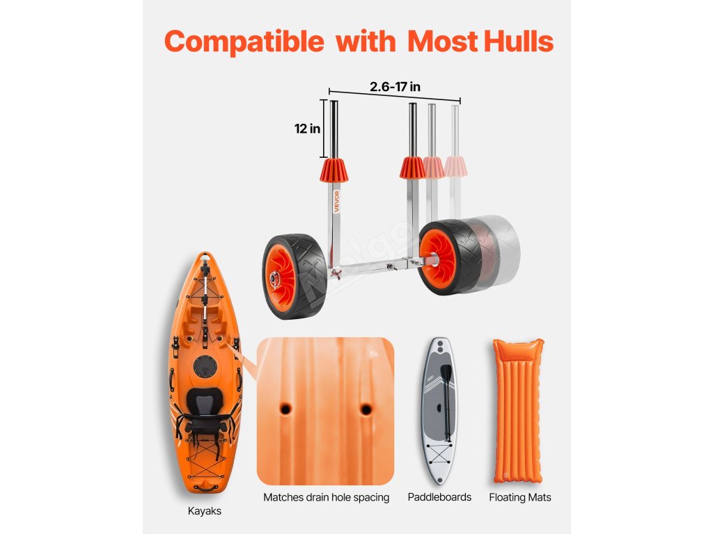 Vozík na kajak, kánoe a paddleboard – nosnost 113.4 kg, 19.1 cm kola