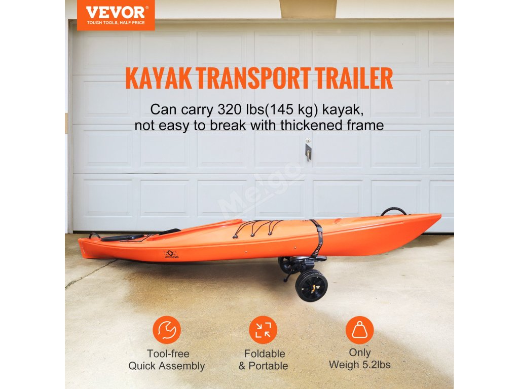 Vozík na kajak, nosnost 320lbs, 10'' pevná kola nastavitelné držáky