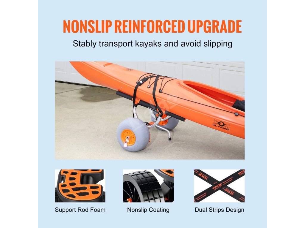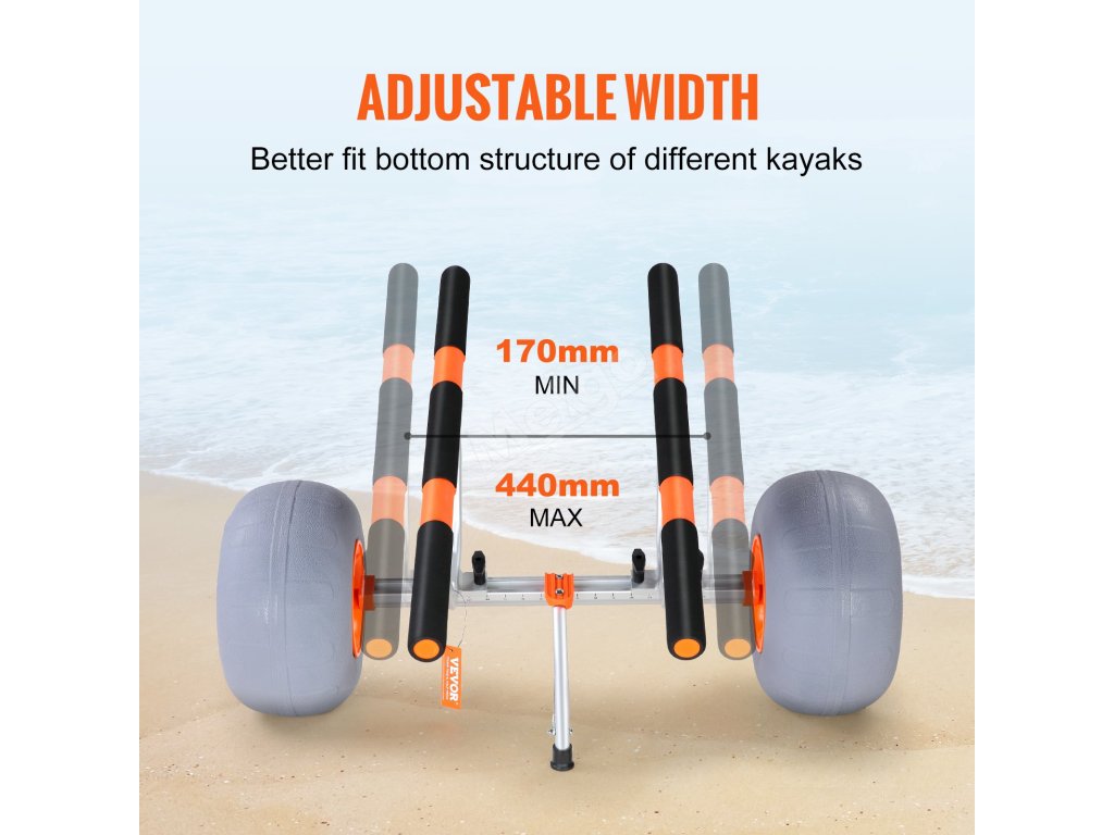 Kajakársky vozík s nastaviteľnou šírkou od 6,69" do 17,32" na všestranné použitie