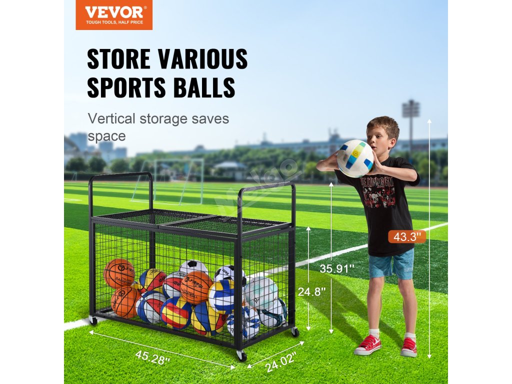Tento vozík na míče maximalizuje vnitřní prostor klece díky vertikálnímu úložnému prostoru, což umožňuje umístit více sportovních míčů. Maximalizuje úsporu místa a poskytuje přehledný a organizovaný prostor pro aktivity. To je důležité zejména v případě omezených nebo malých prostor.