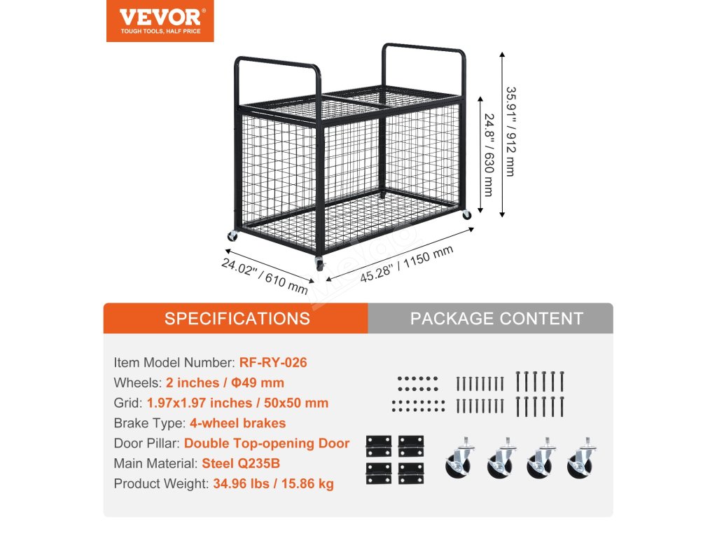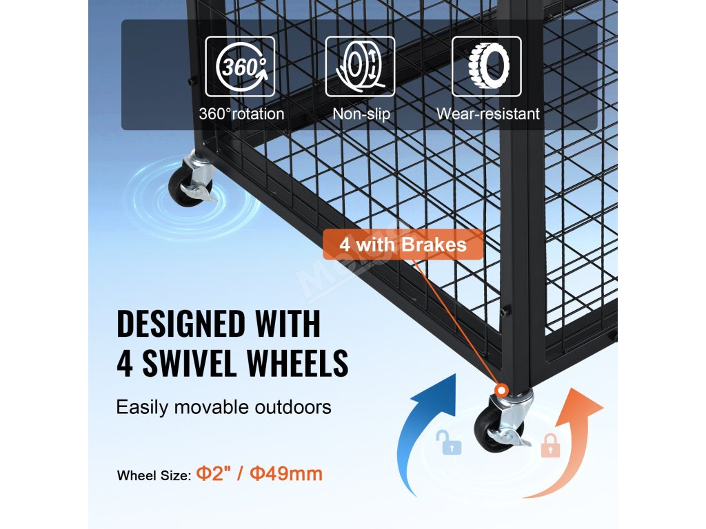 Tento organizér pro ukládání sportovního vybavení je vybaven 4 otočnými kolečky s brzdou, která umožňují snadný přesun na libovolné místo. Kolečka umožňují uživatelům vozík snadno zajistit, čímž zvyšují stabilitu a bezpečnost klece.