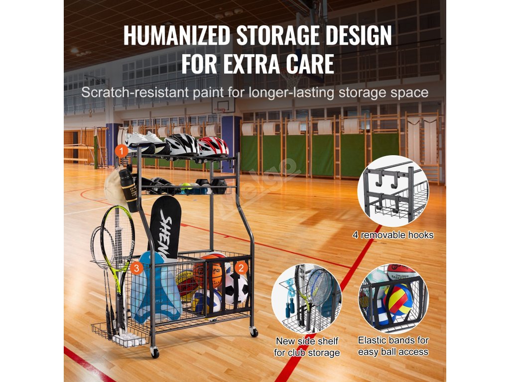 Tento organizér pro ukládání sportovního vybavení je vyroben z odolných ocelových rámů s práškovým nástřikem a silného kovového pletiva, které je trvanlivé a odolné proti opotřebení pro dlouholeté používání. Texturovaný povlak je odolný proti poškrábání, vodě, rzi a poškrábání, což zajišťuje delší životnost úložného řešení.