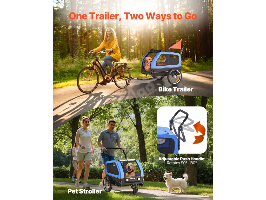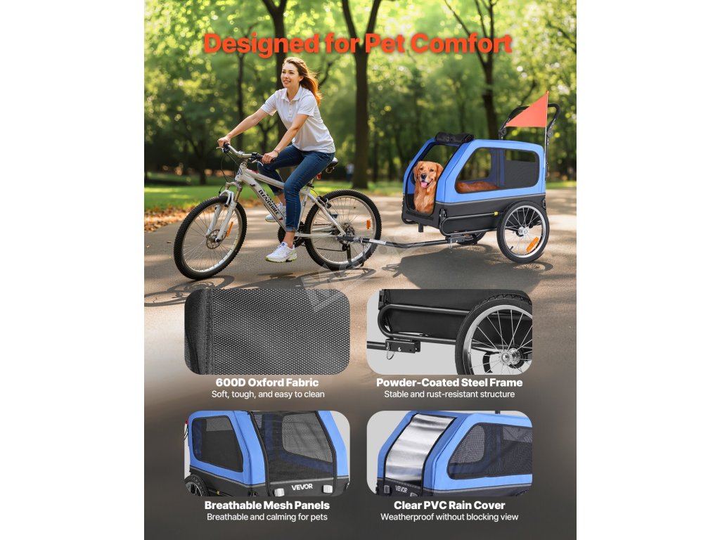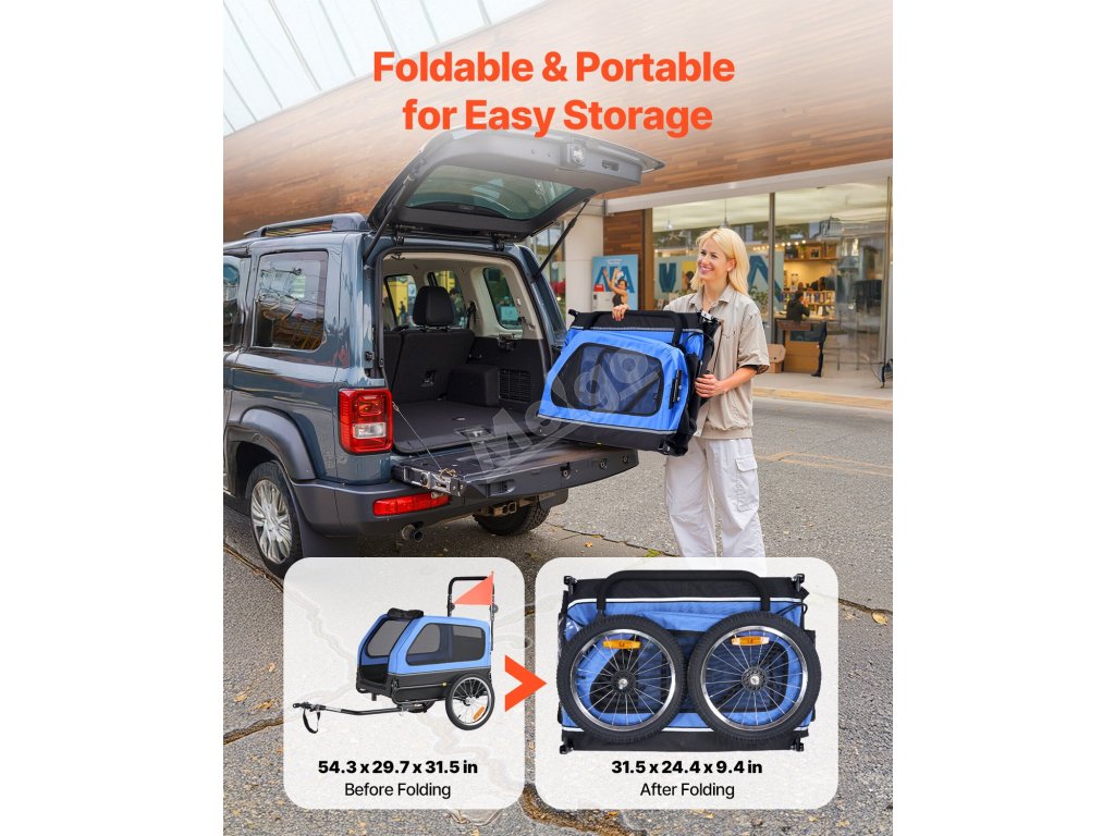 Vozík pro psa na kolo do 40 kg, 2v1 kočárek/vozík, skládací rám