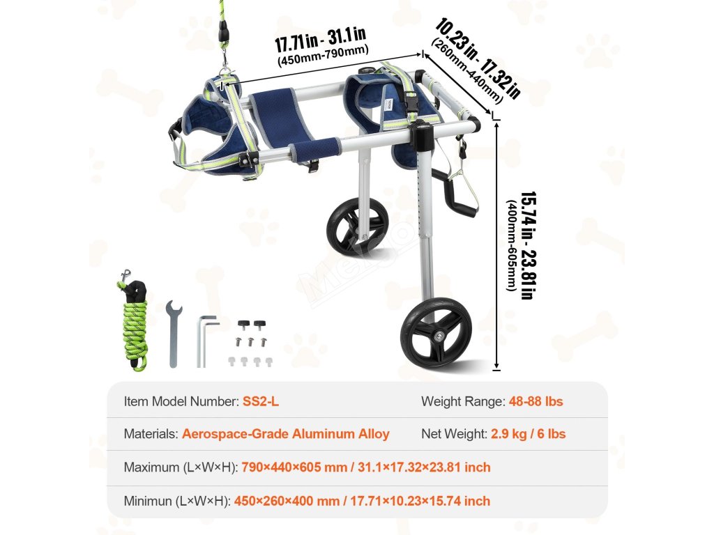 VEVOR 2 Wheels Pet Wheelchair-Get Your Pets Running Again!