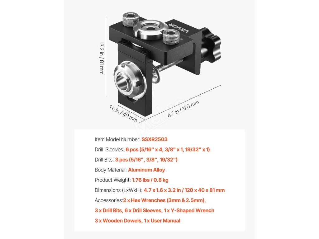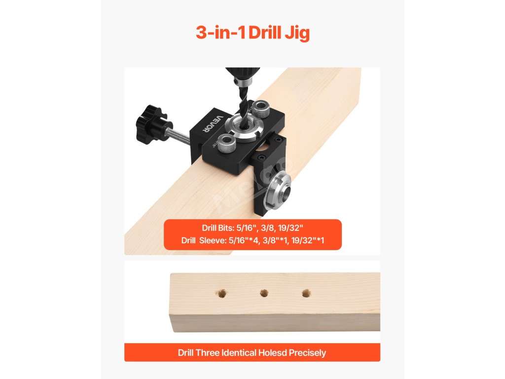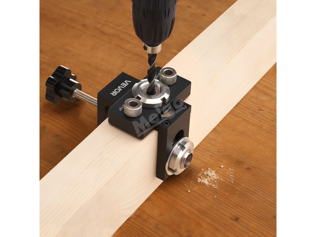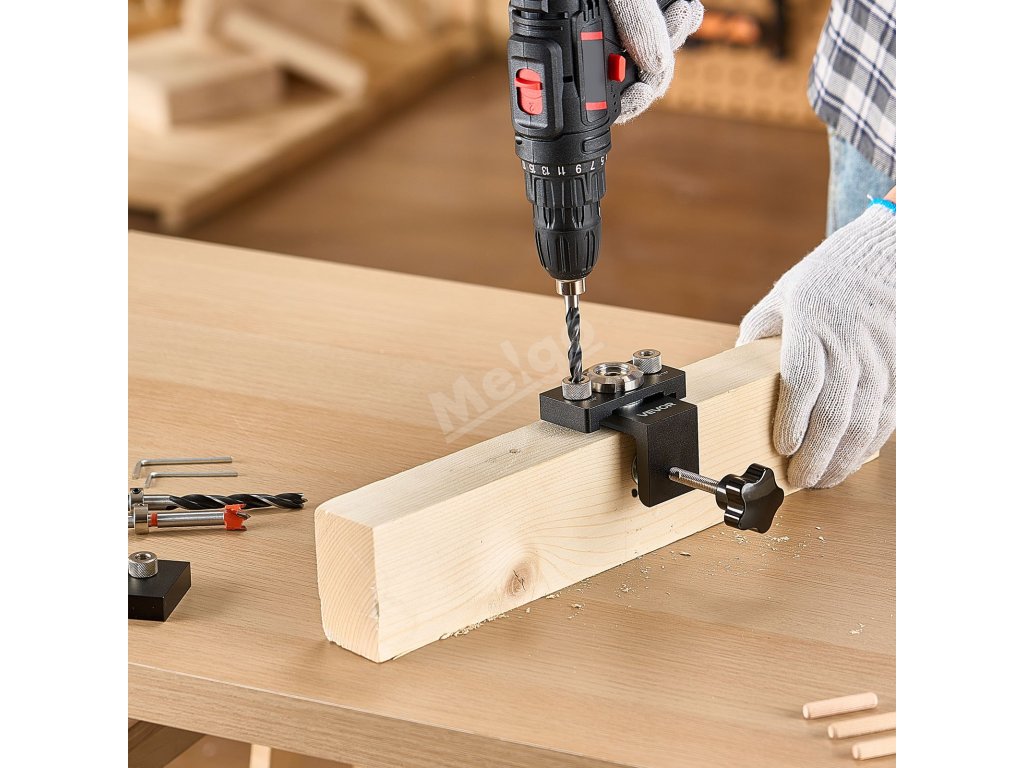 Tento hmoždinkový přípravek 3 v 1 je všestranný a přesný nástroj pro obrábění dřeva, speciálně navržený pro efektivní vrtání a spojování.