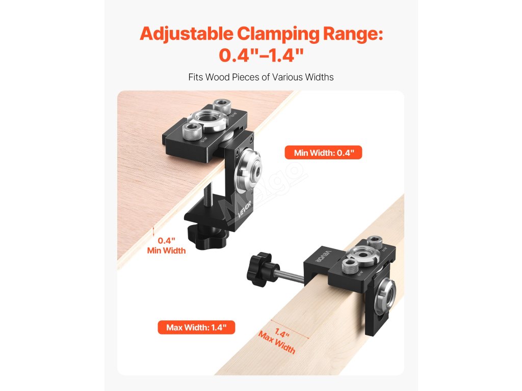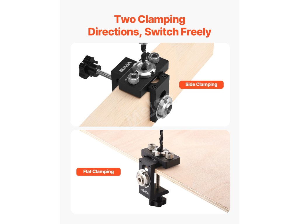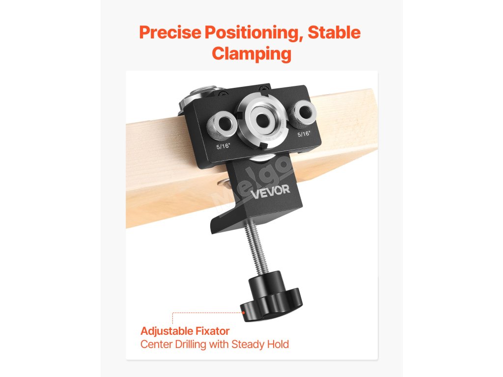 Tento přípravek pro vrtání přímých otvorů je vybaven průhlednými stupnicemi s laserovým značením odolnými proti opotřebení, které udržují přesné značení po dlouhou dobu používání a zajišťují přesnost i po opakovaných operacích.